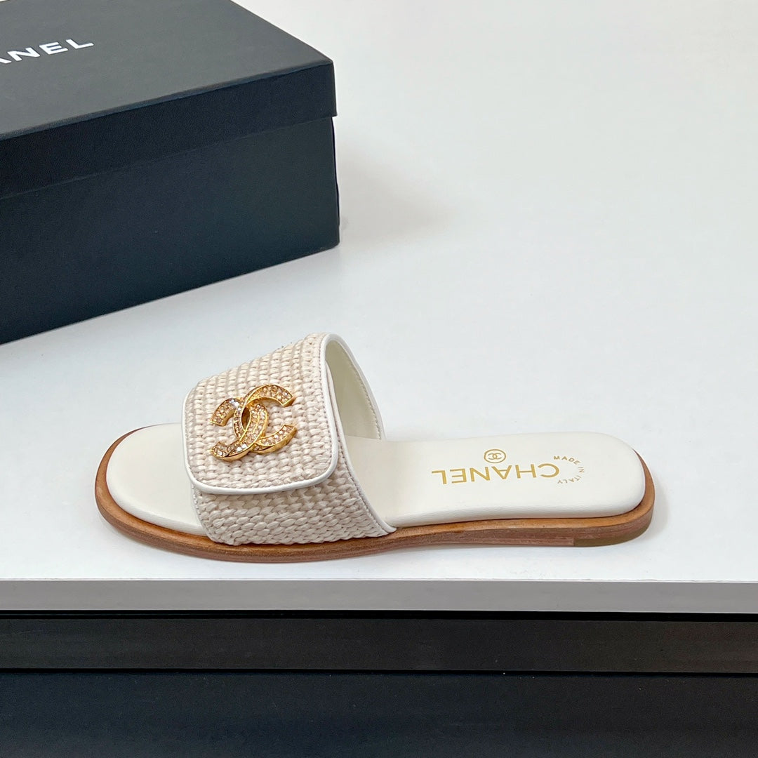 CC Slippers In White Palm Fiber 149725