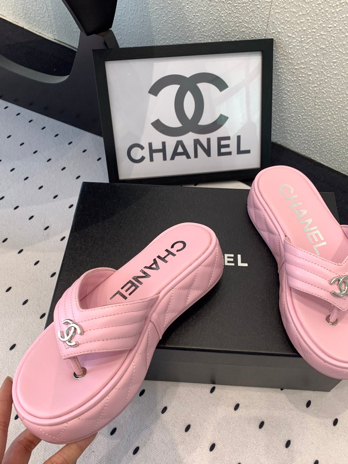 CC Thong Slippers In Pink Lambskin 147049