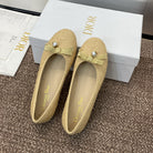 CD Ballet Flat Beige Woven Sedge And Lambskin