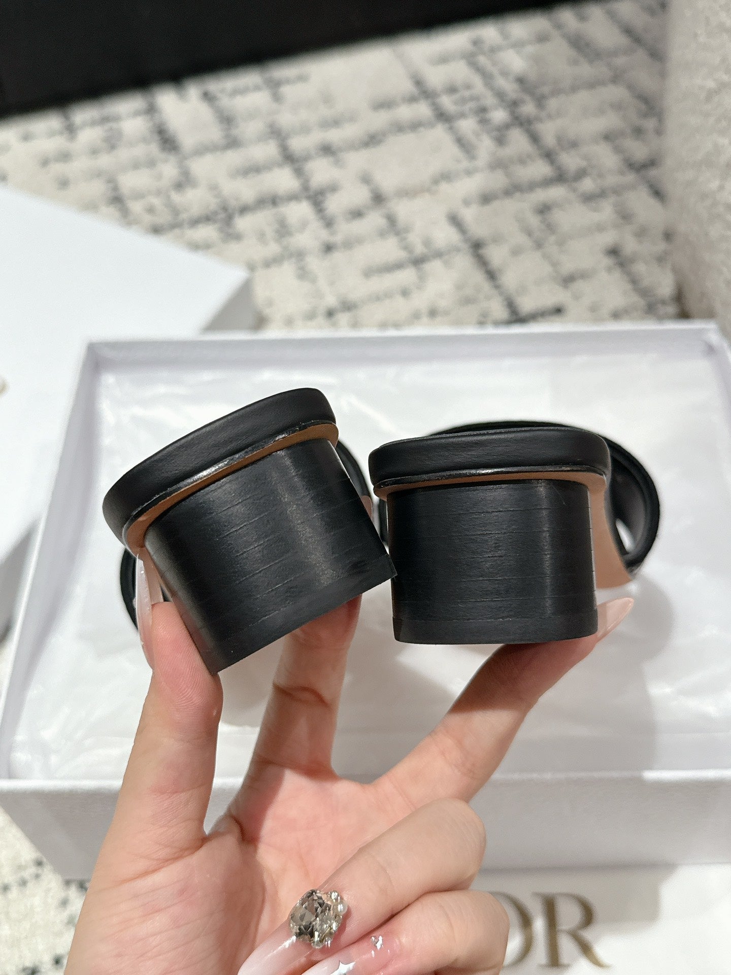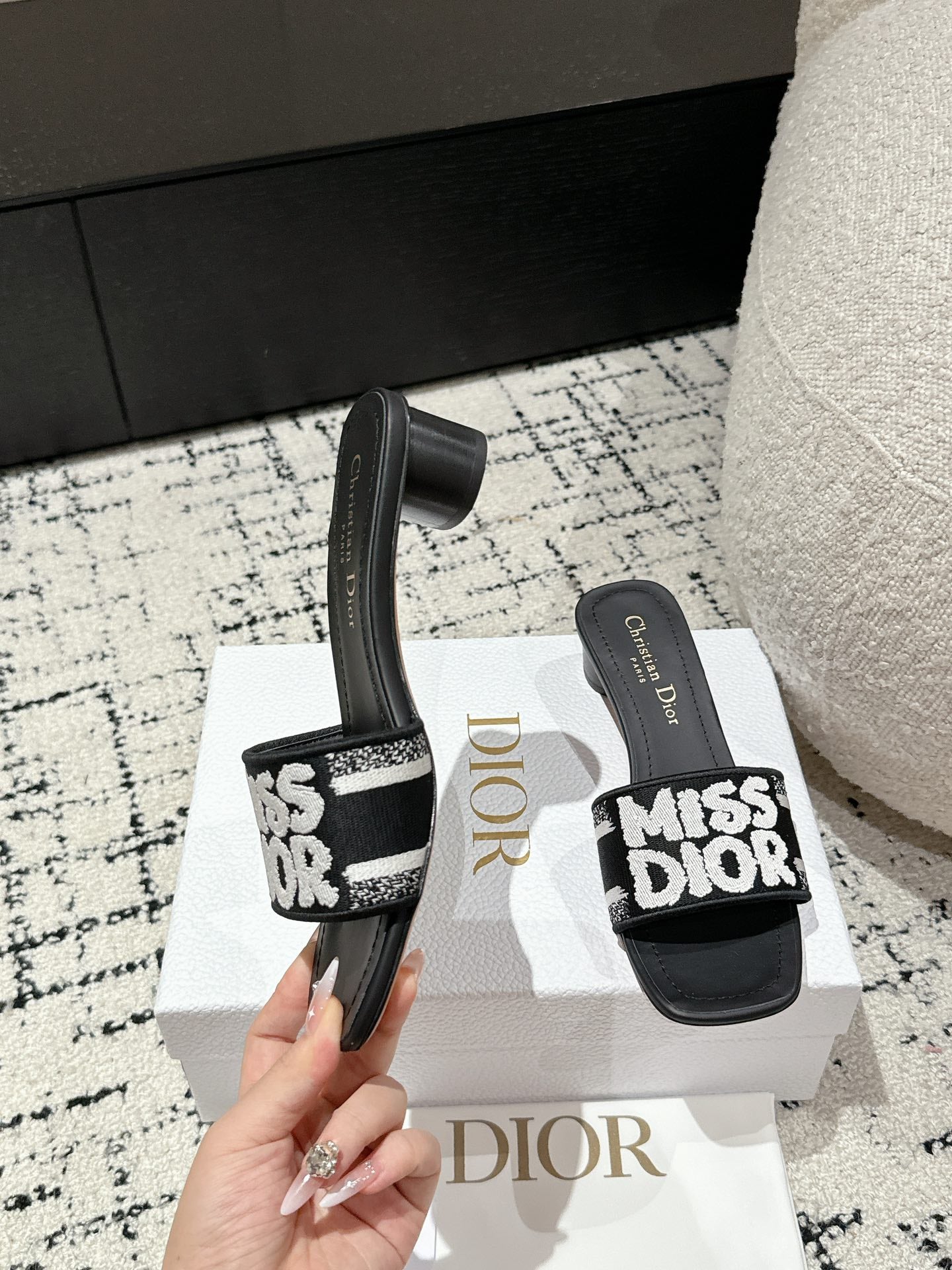 CD Dway Heeled Slide Black Mix White Embroidered Cotton