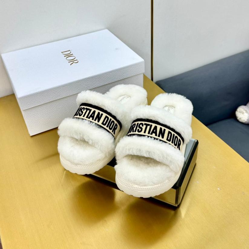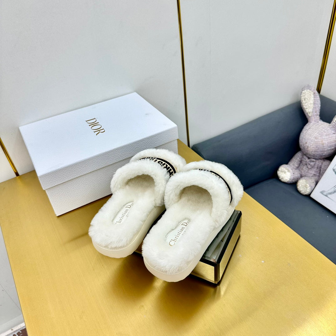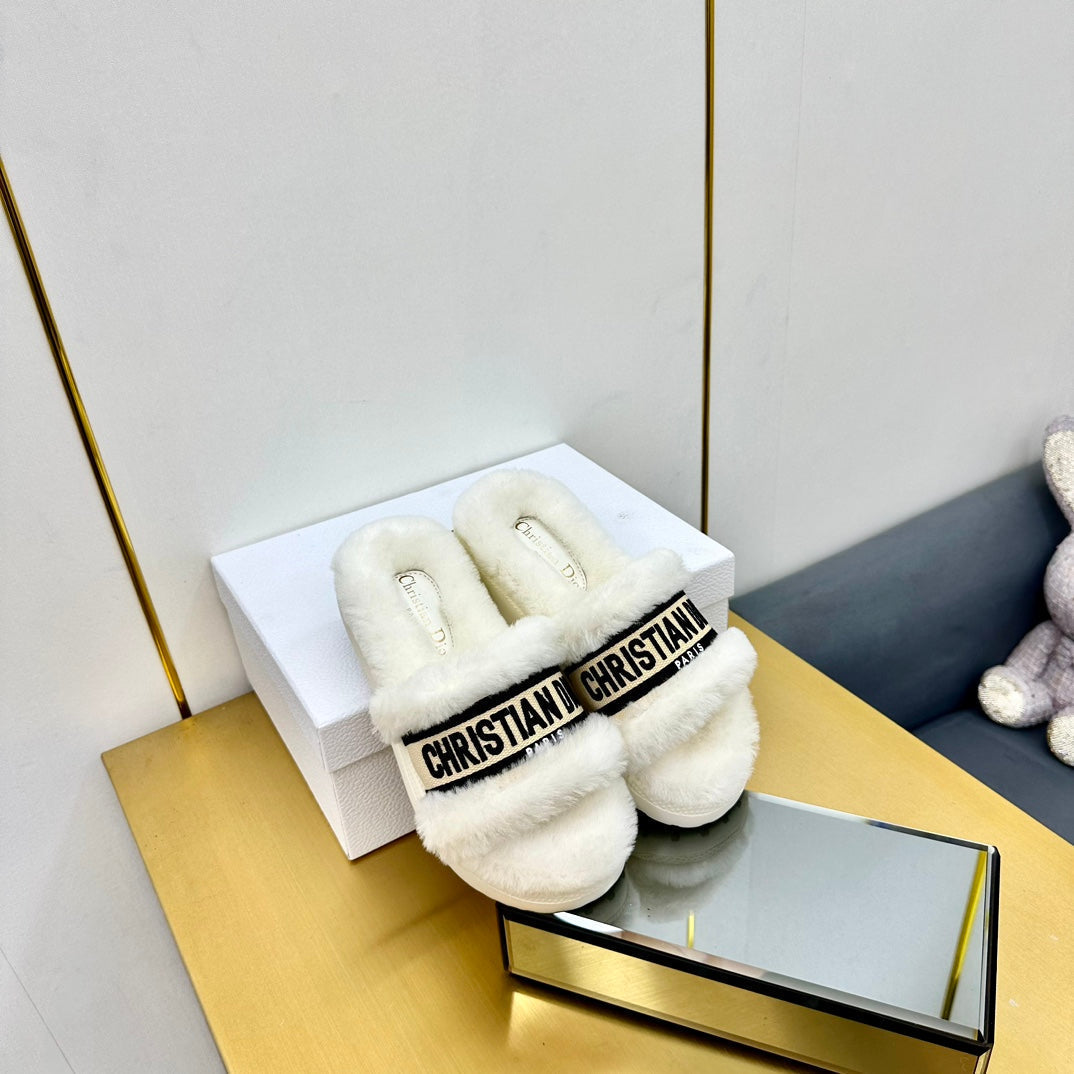 CD Dway Slide In White Mix Black Wool Fleece Lining And Canvas Fabric 111079