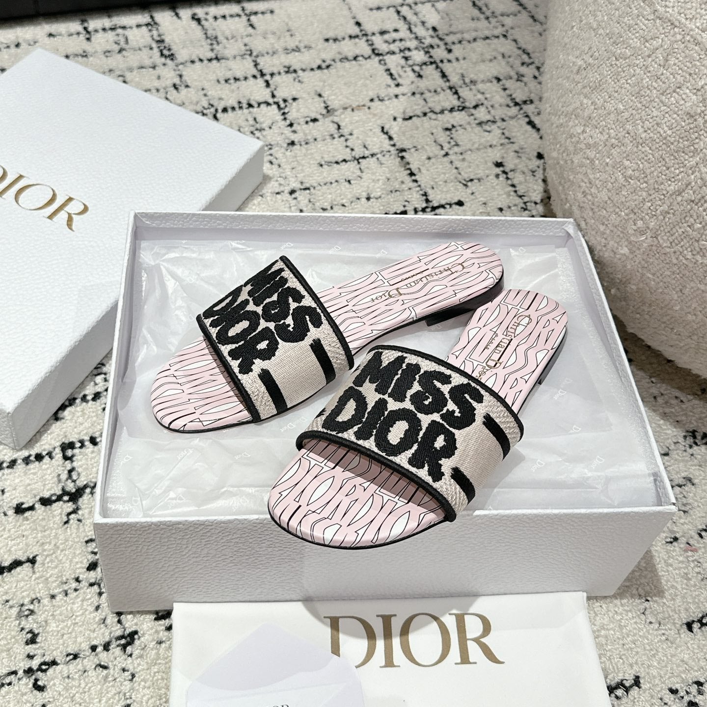 CD Dway Slide Pink Mix Black Embroidered Cotton