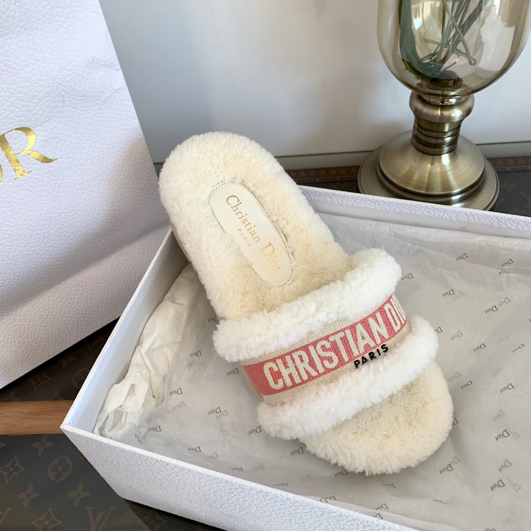 CD Dway Slide Pink White Fleece Lining And Canvas Fabric