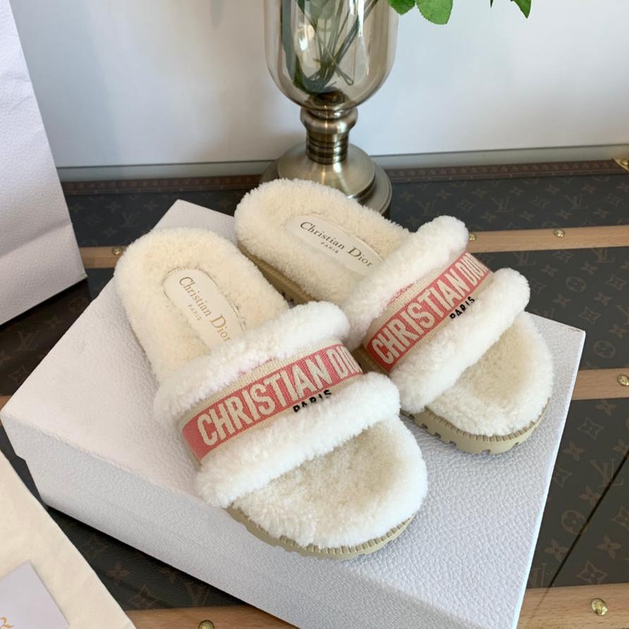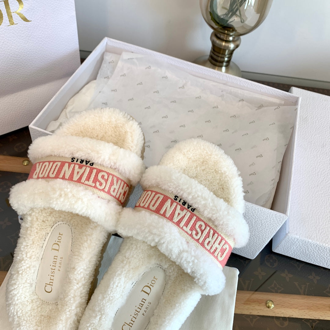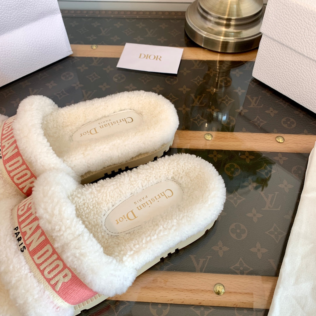 CD Dway Slide Pink White Wool Fleece Lining And Canvas Fabric