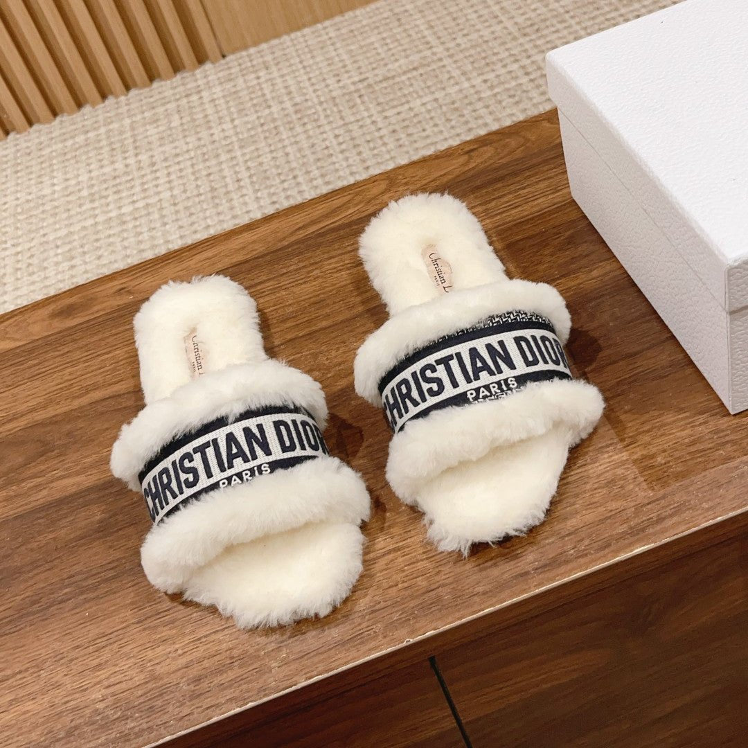 CD Dway Slide White Black Fleece Lining And Canvas Fabric