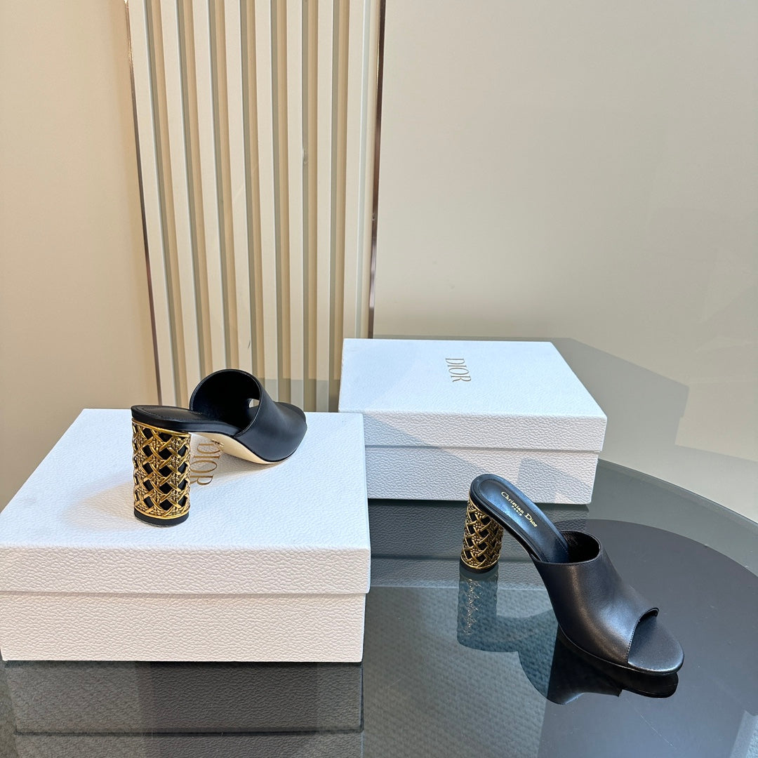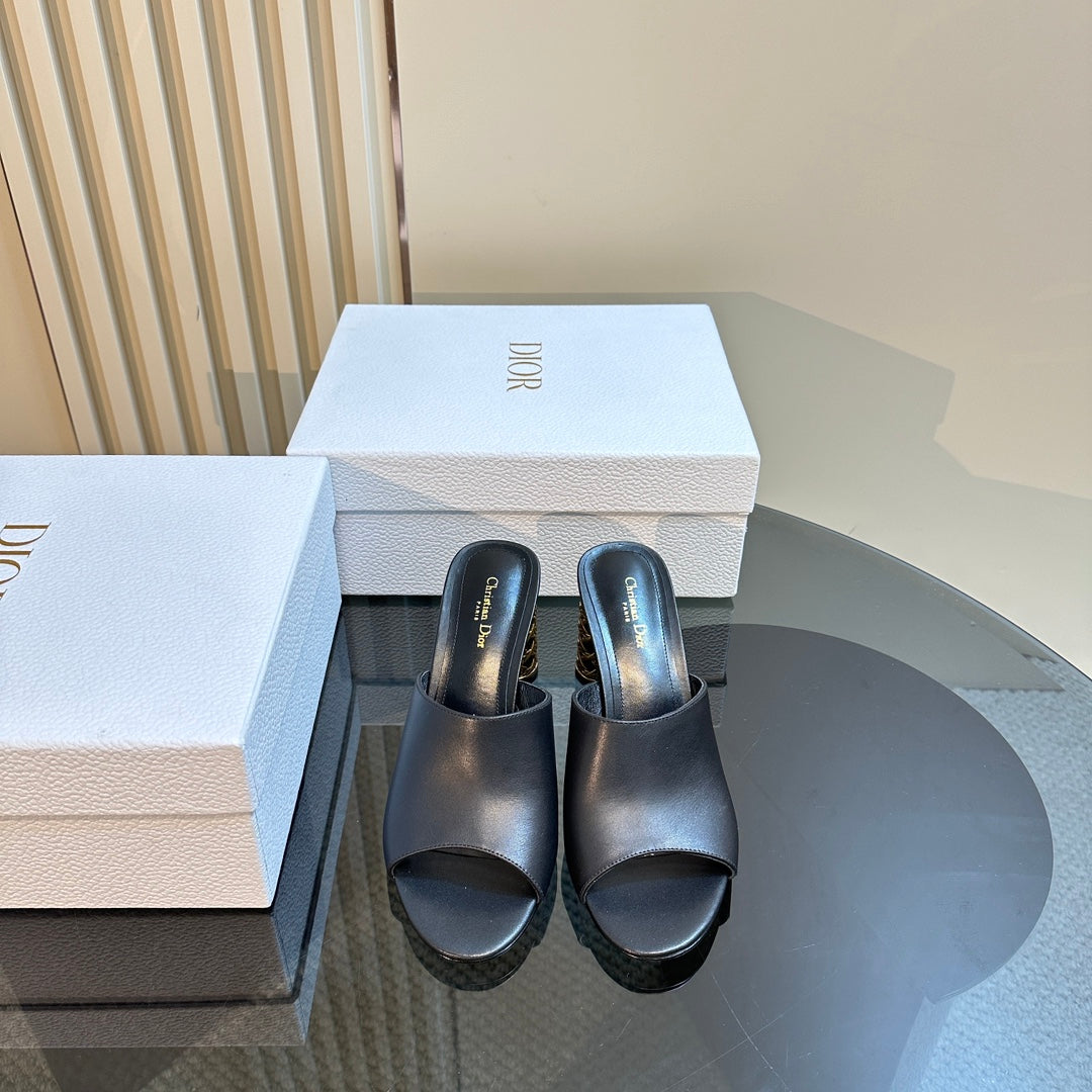 CD Icon Heeled Slide 95mm Black Calfskin