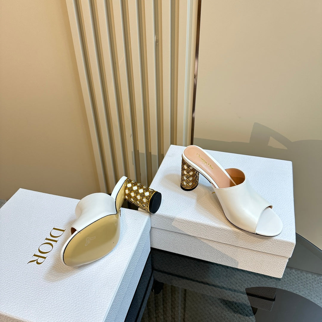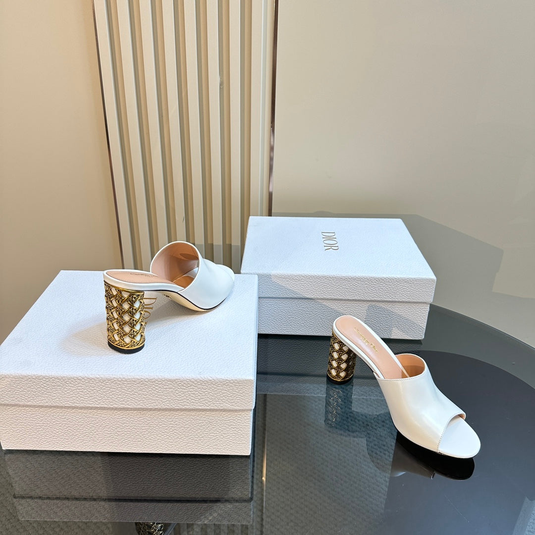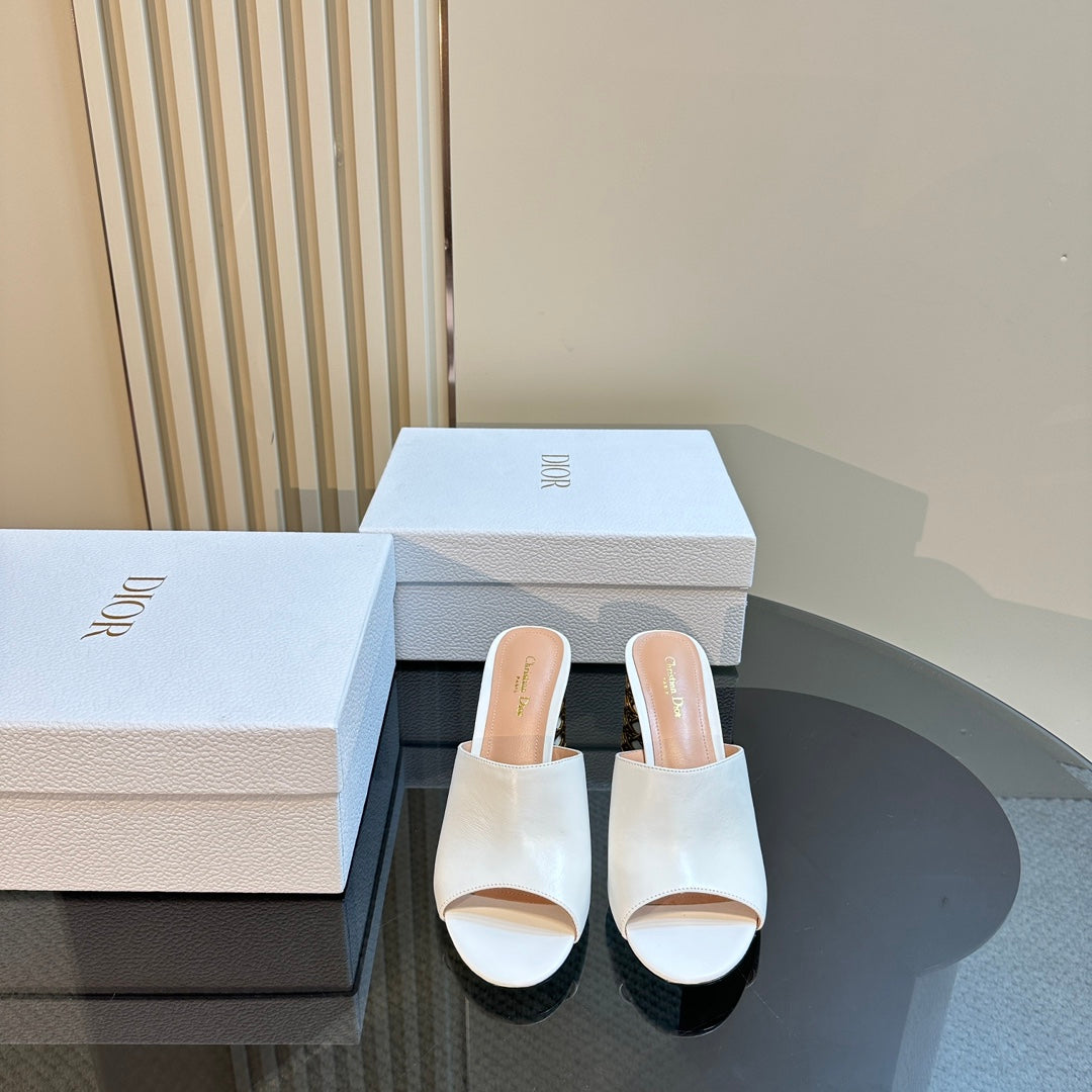 CD Icon Heeled Slide 95mm White Calfskin