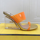 FENDI FIRST 95 MM HIGH-HEELED SANDAL IN LIGHT ORANGE TPU FILM AND LAMBSKIN