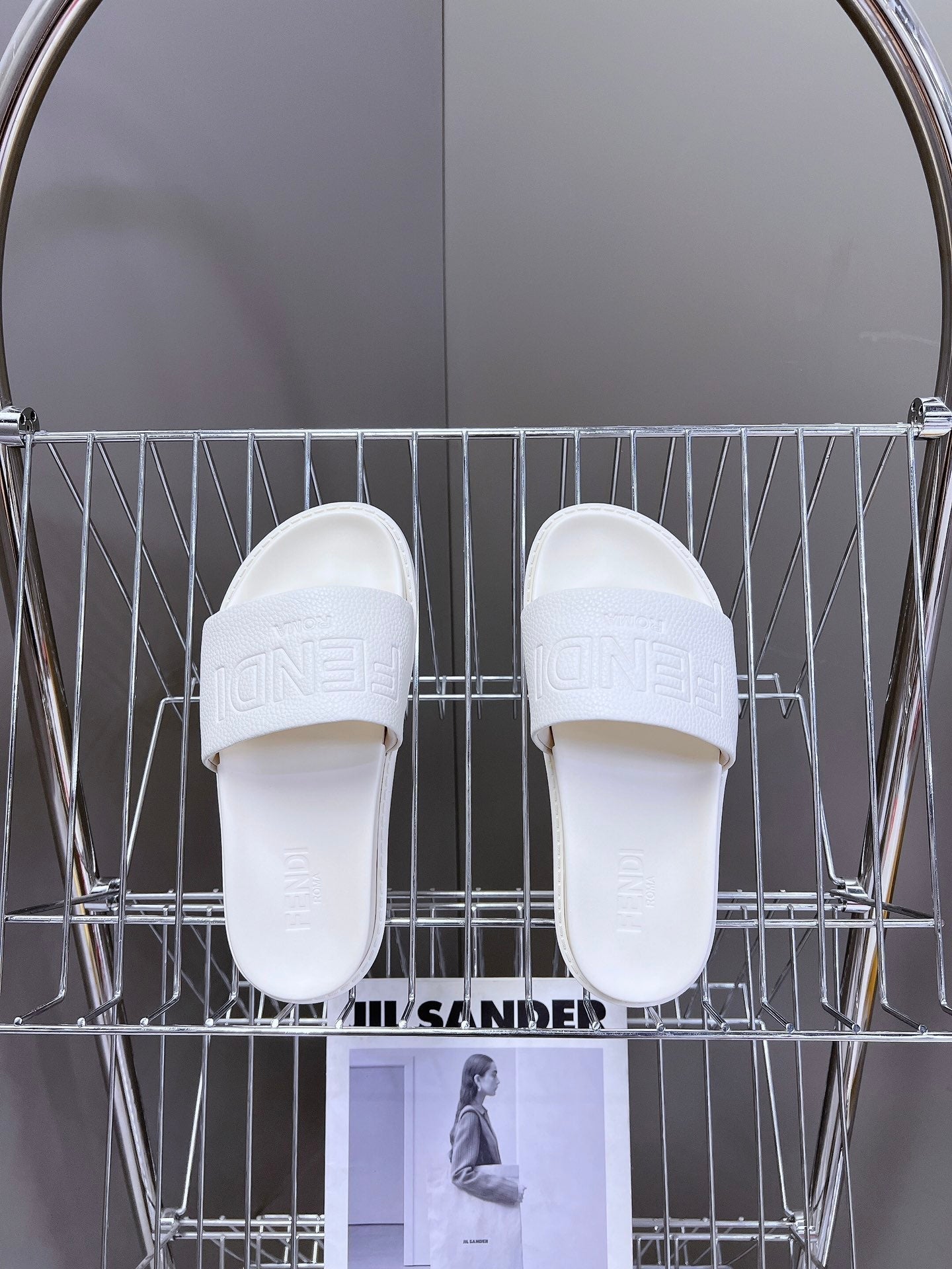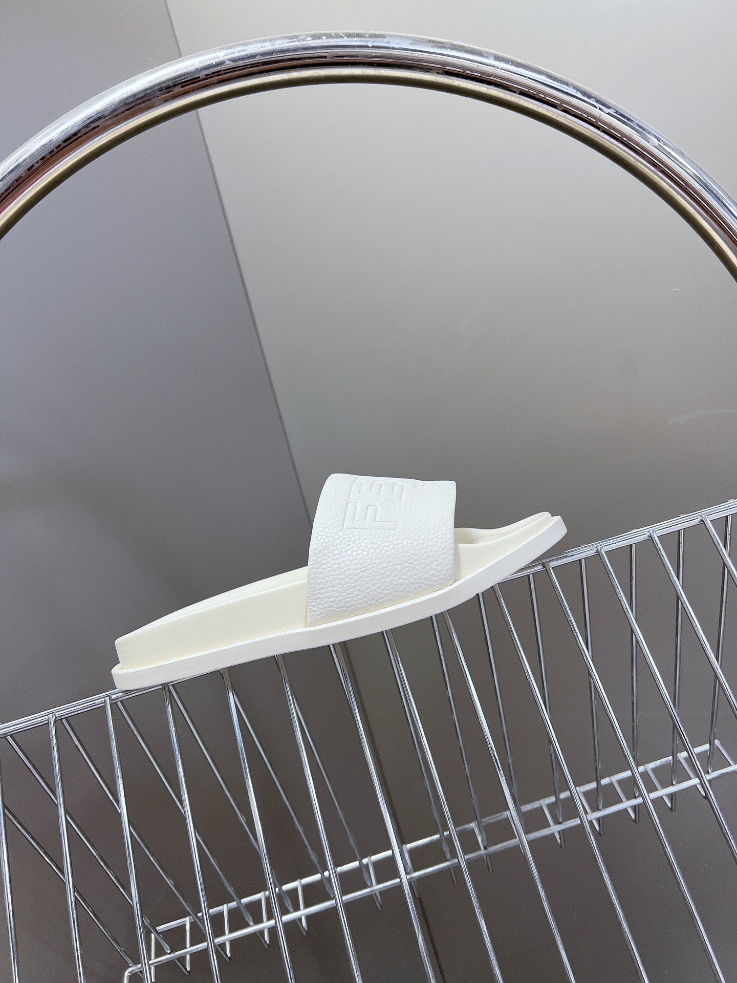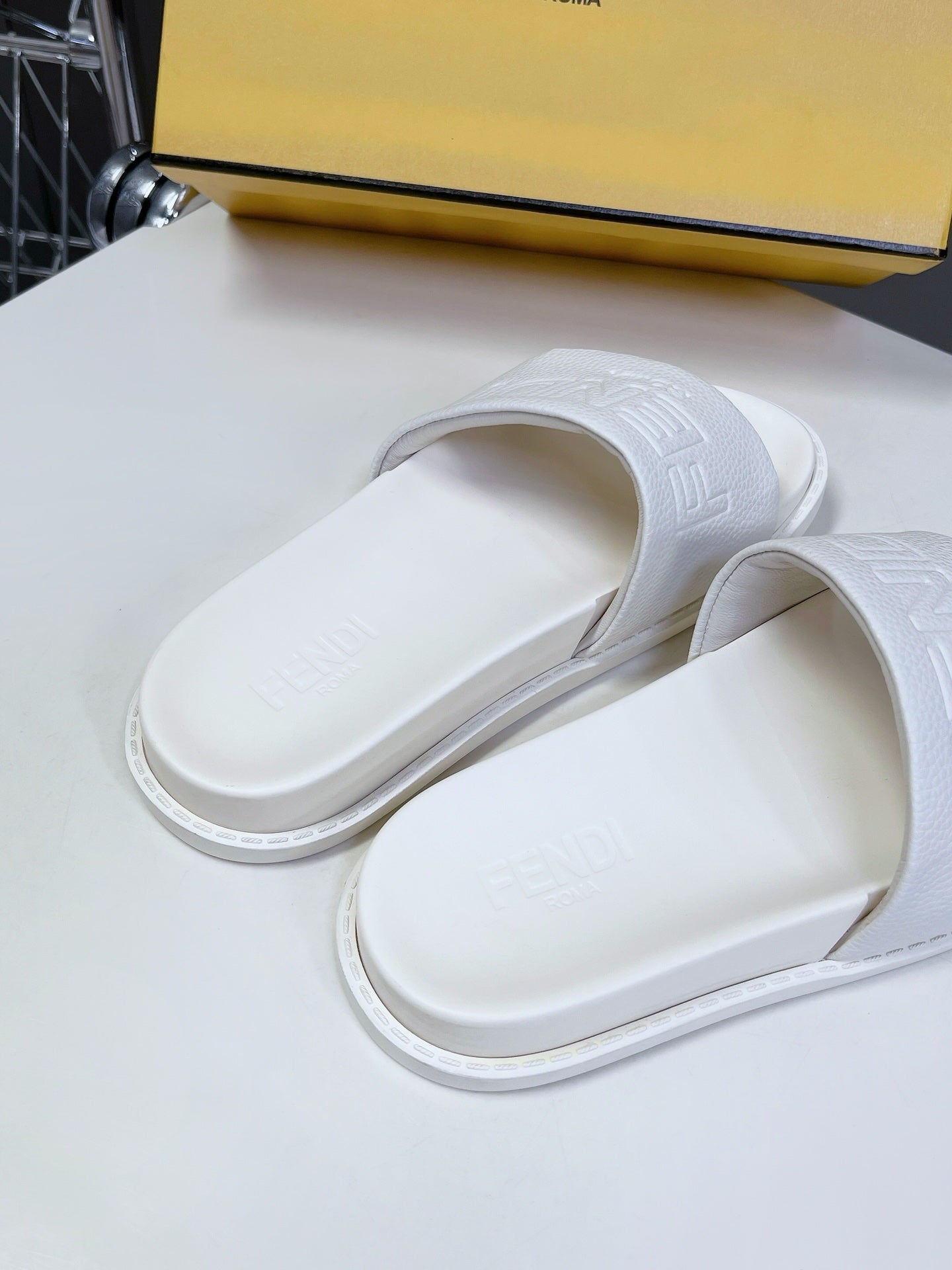 FENDI ROMA SLIDES IN WHITE LAMBSKIN LEATHER