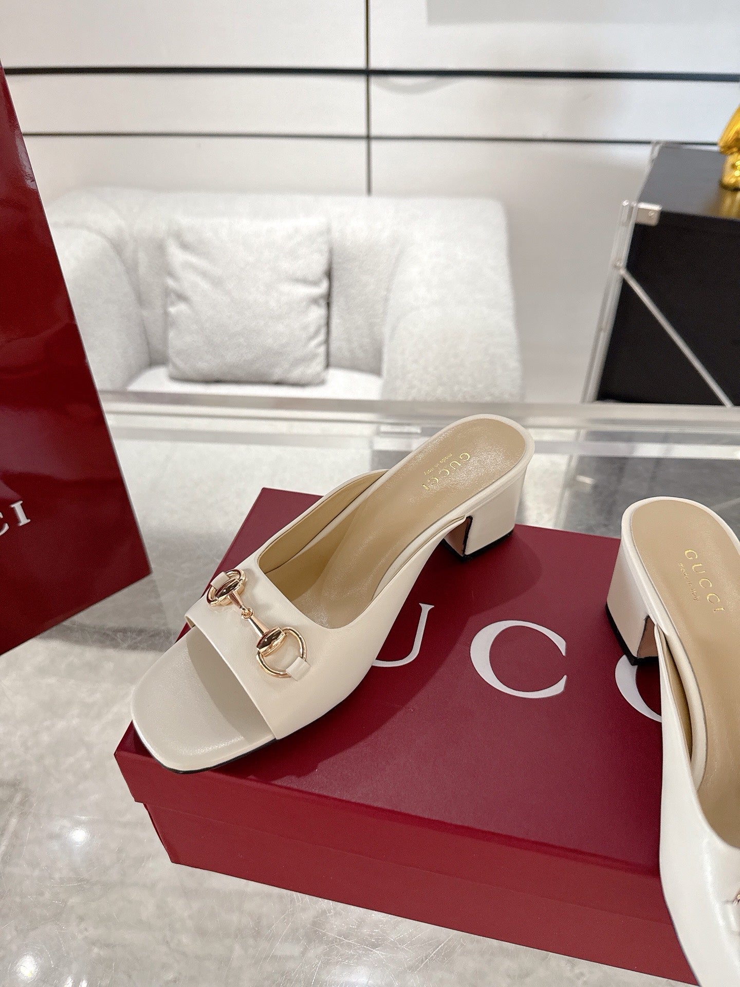 GC Horsebit Slide Ivory Cowhide 292403