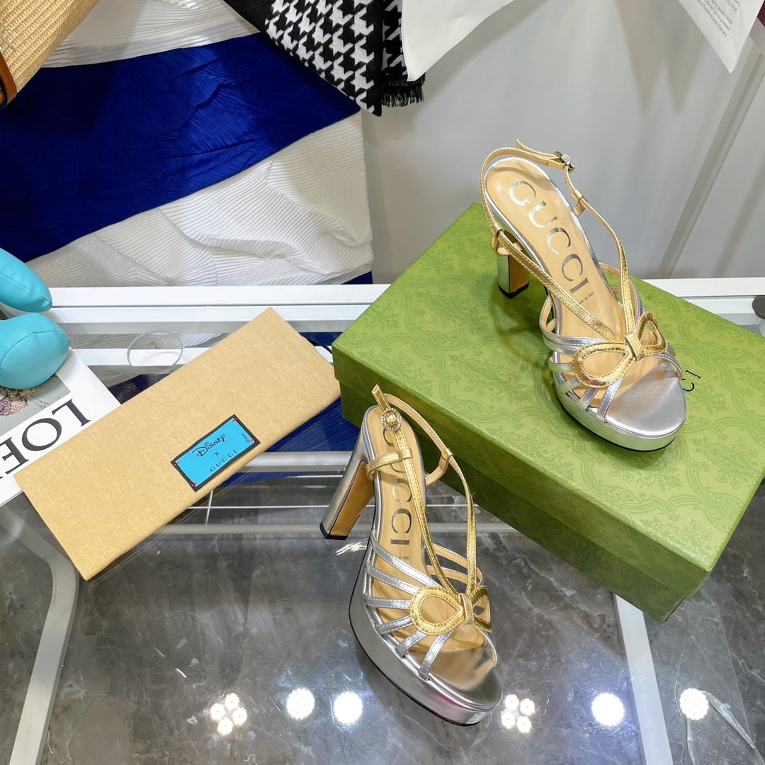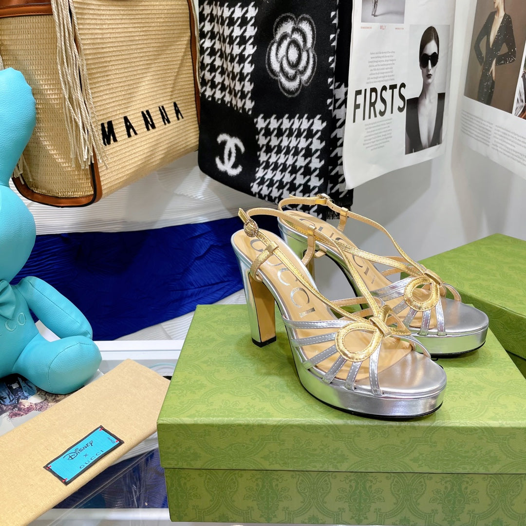 GG HIGH HEEL SANDAL METALLIC GOLD AND SILVER LAMBSKIN