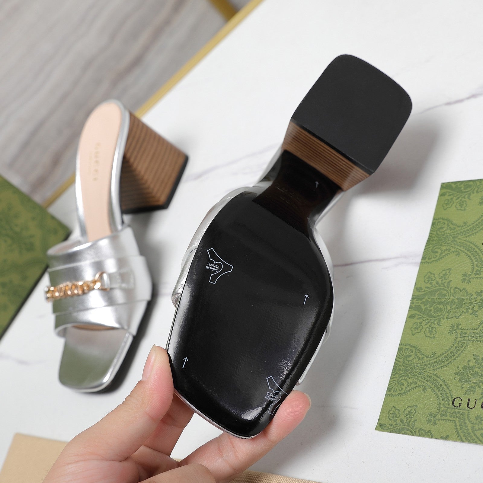 GG High Heels Half Slippers Silver