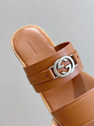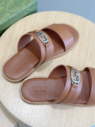 GG Men's Interlocking G Sandals Brown Cowhide 549482