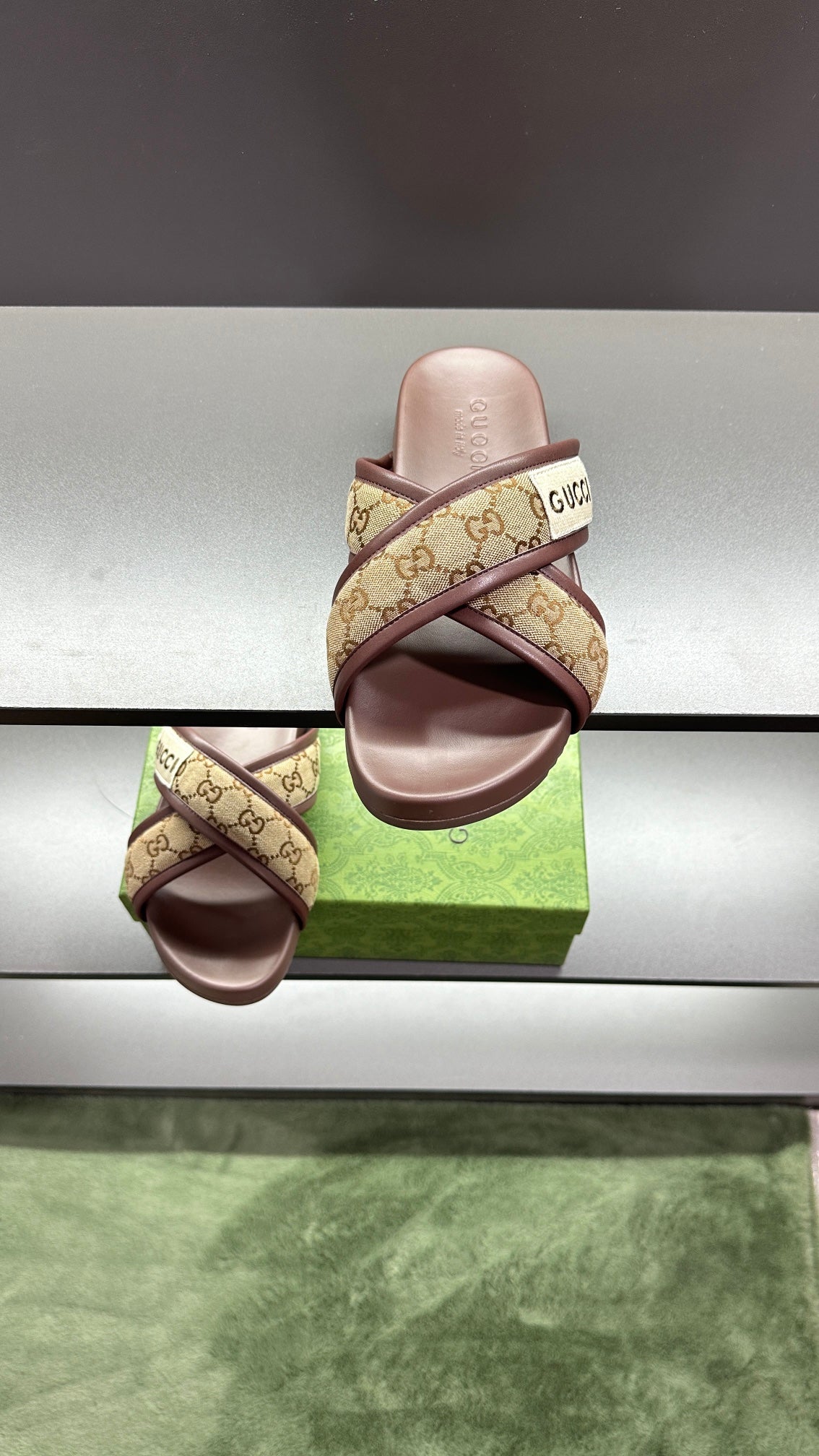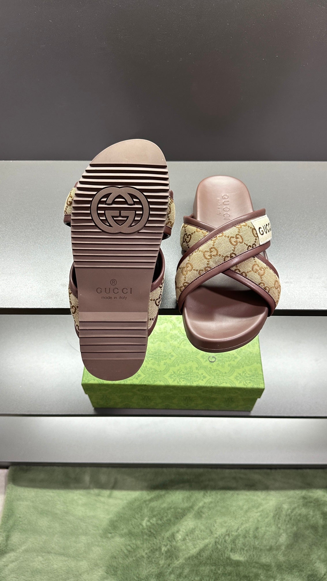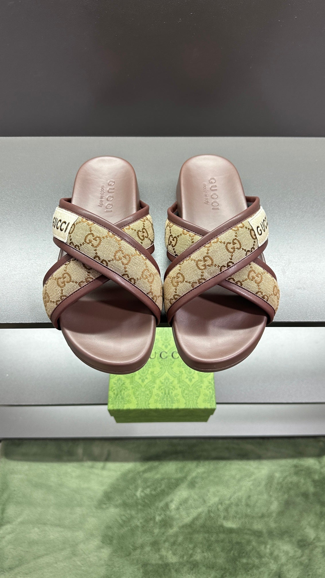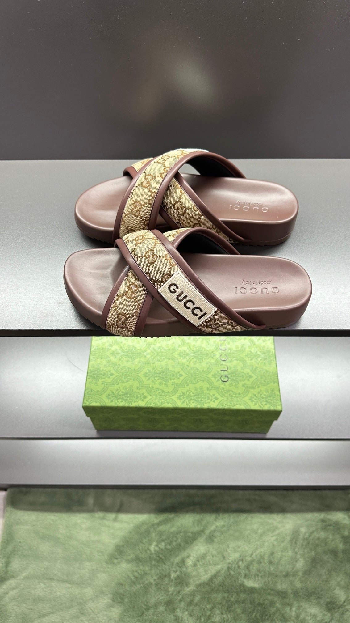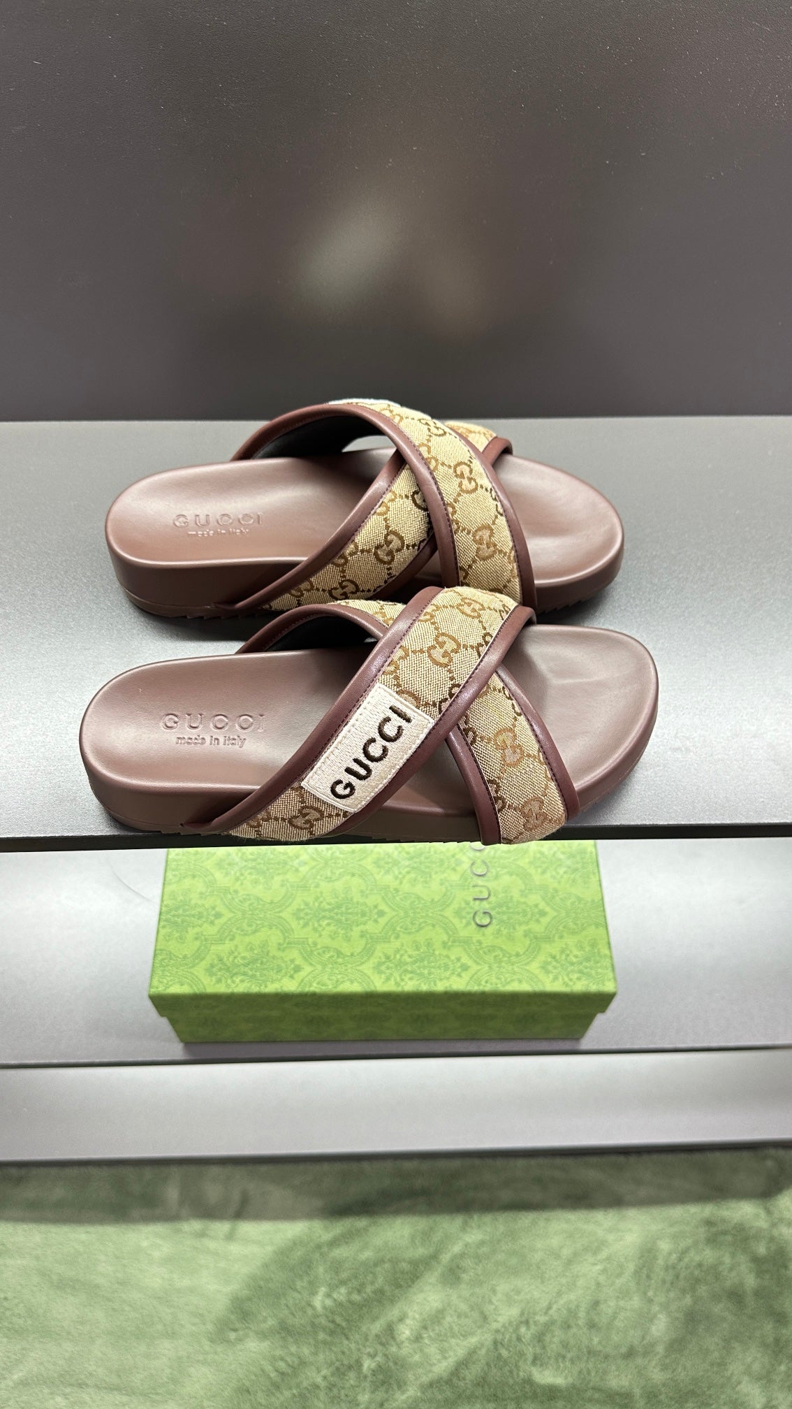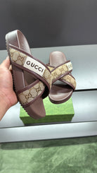 GG Men's Sandals Brown Polyester Leather 547243