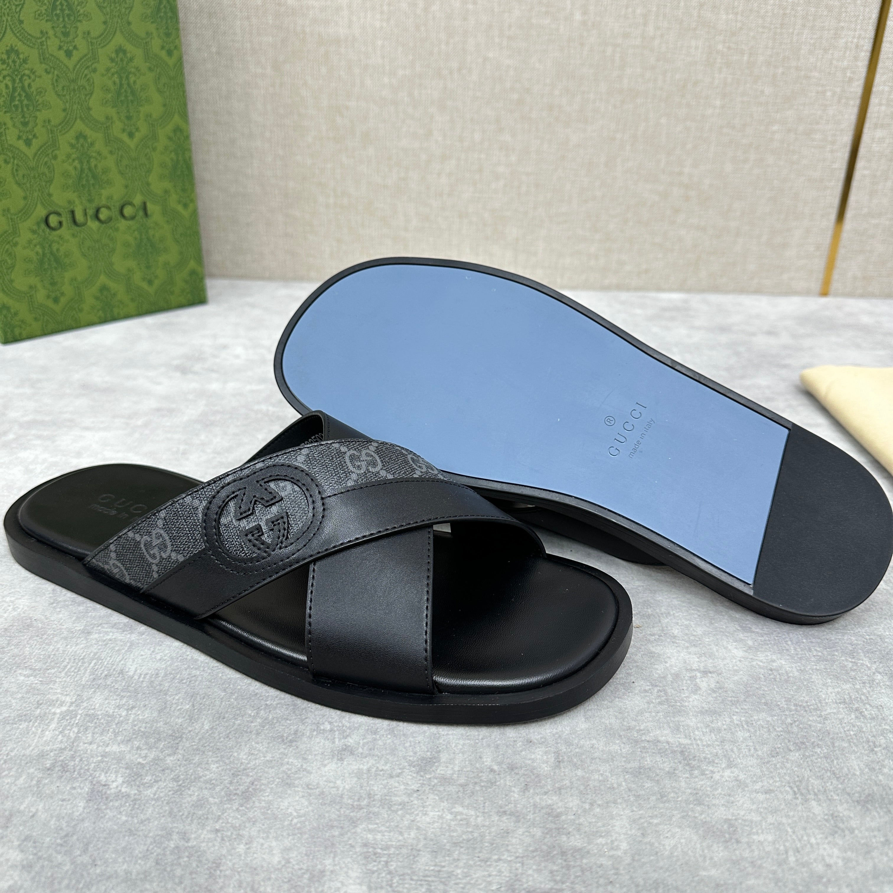 GG Men's Slide Black Canvas Cowhide 542949