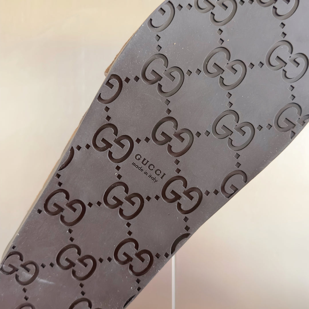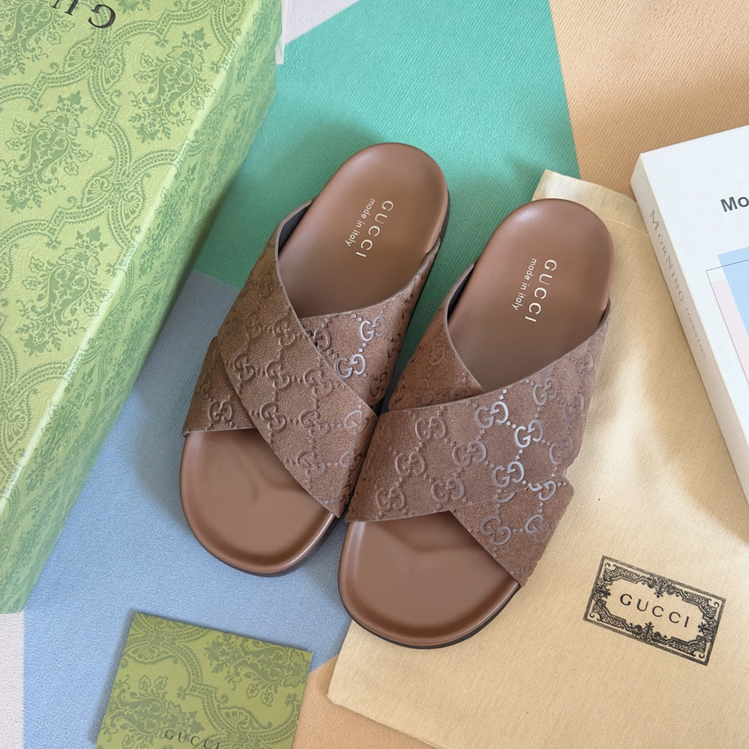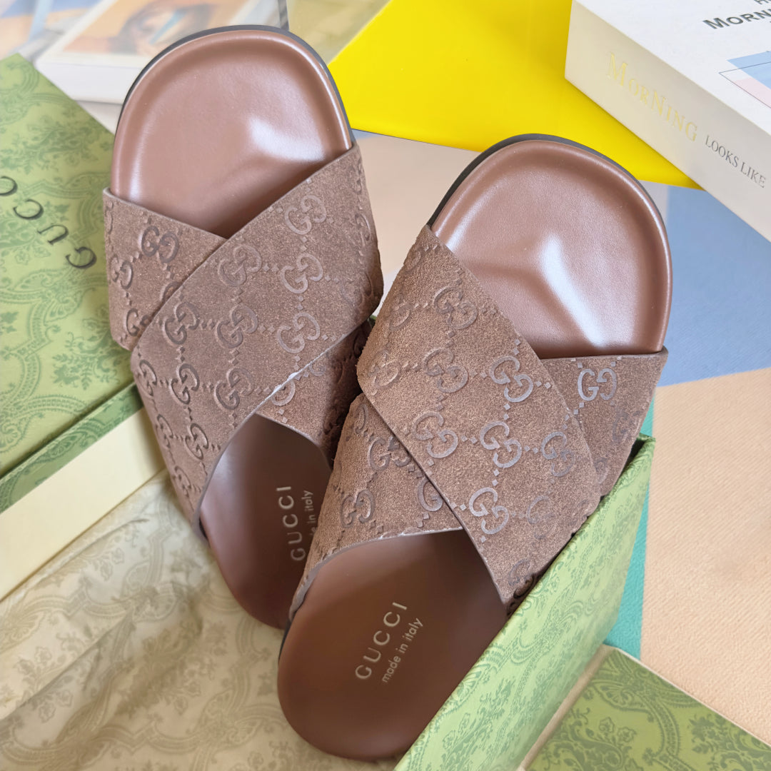 GG Men's Slide Brown Embossed Suede 595710