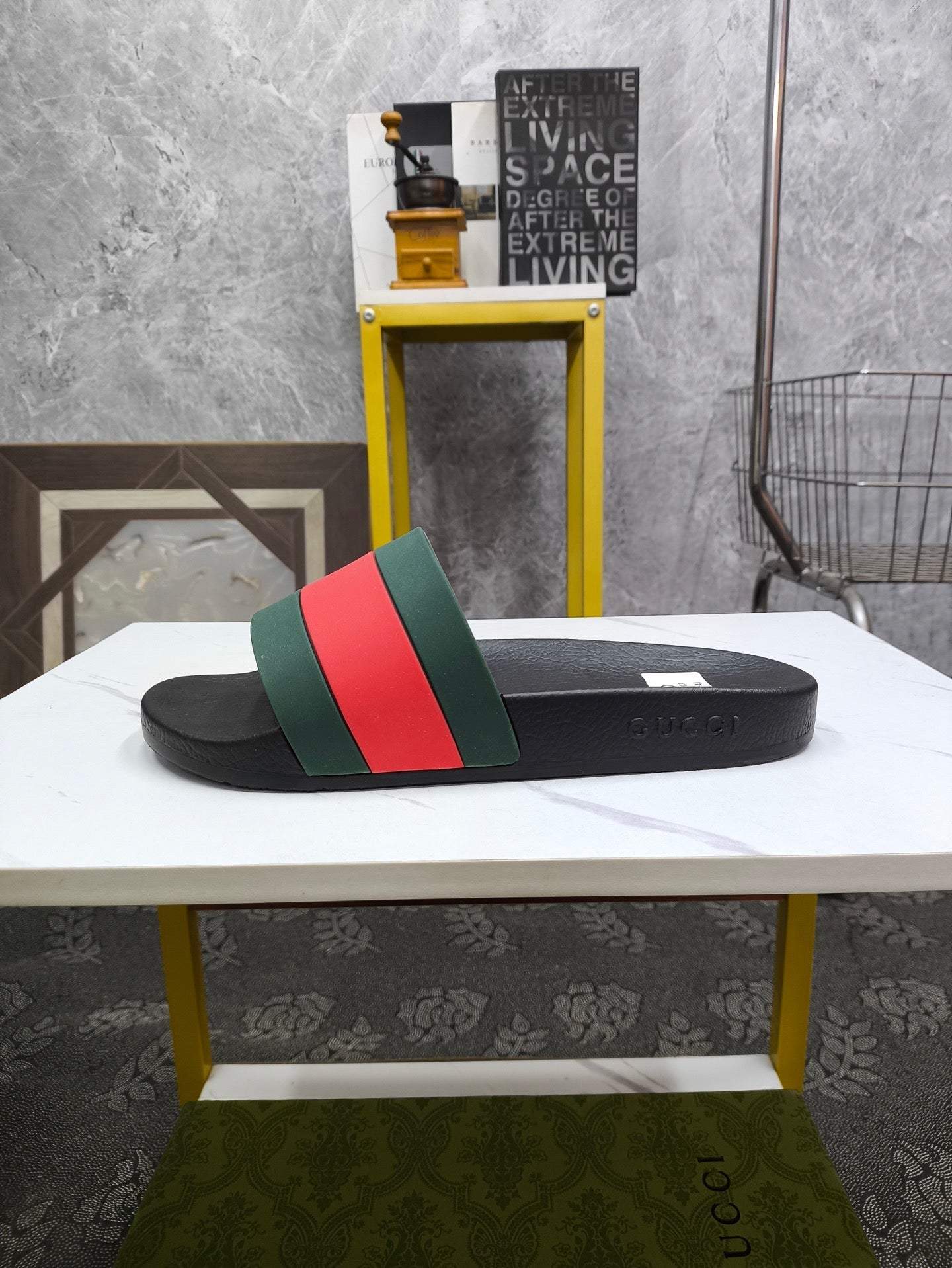 GG Men's Slide Green Red Sheepskin 540041