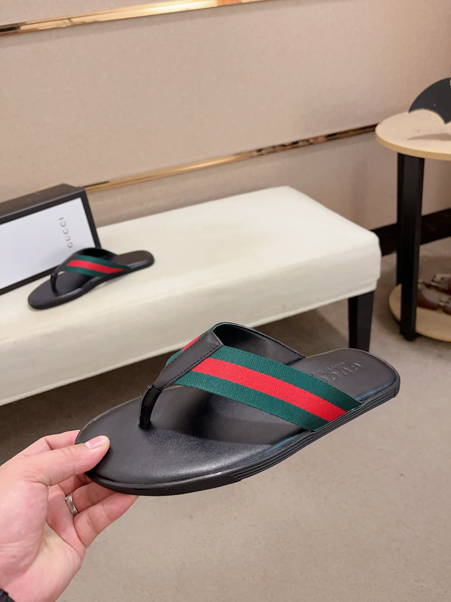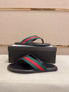 GG Men's Thong Web Black Green Cowhide 554611