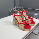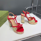 GG Platform Black Heel 105 Sandal Red Calfskin Beige Raffia