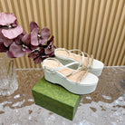 GG PLATFORM SANDAL WHITE CALFSKIN WITH CHAINS