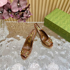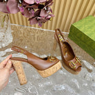 GG SANDAL WITH PLATFORM AND CLAMP CARAMEL LAMBSKIN
