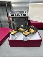 Heeled Sandals 6cm with Crystal Square Buckle Gold and Black