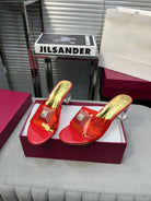 Heeled Sandals 6cm with Crystal Square Buckle Gold and Red