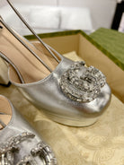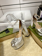 HIGH SANDAL SQUARE HEEL 12 CM IN SILVER CALFSKIN