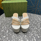 HIGH WEDGE PLATFORM IN WHITE CALFSKIN WITH GOLD HARDWARE