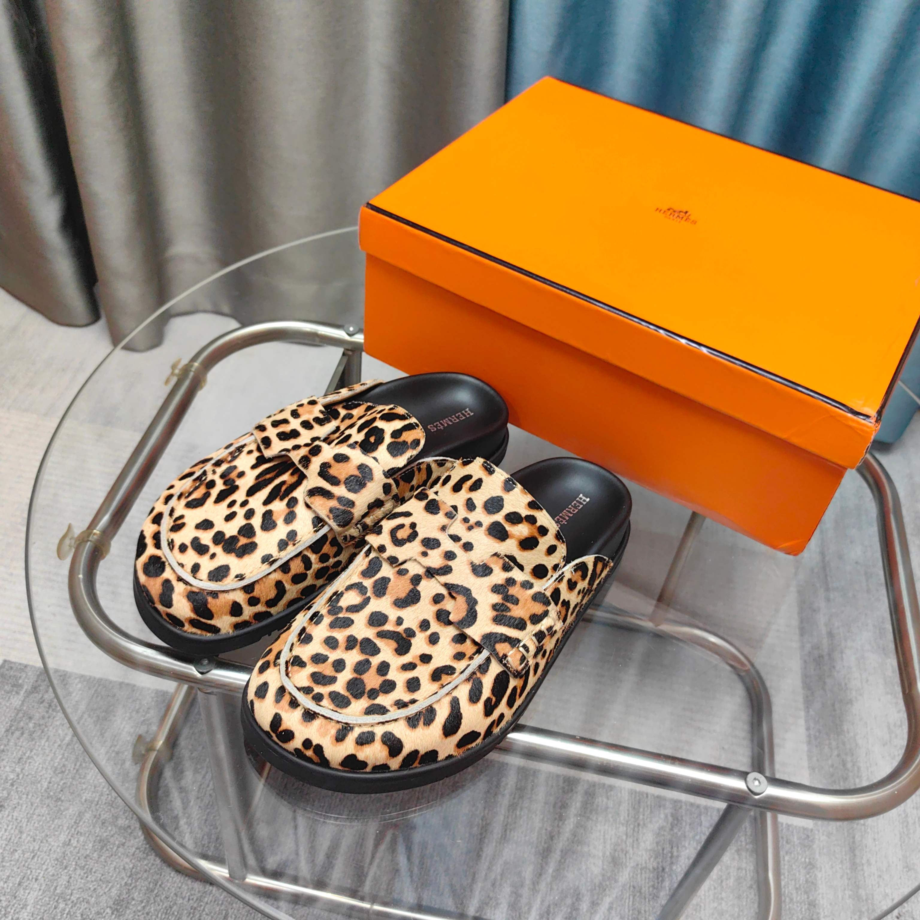HM 25 Go Mule Light Leopark Horsehair Fabric 369355