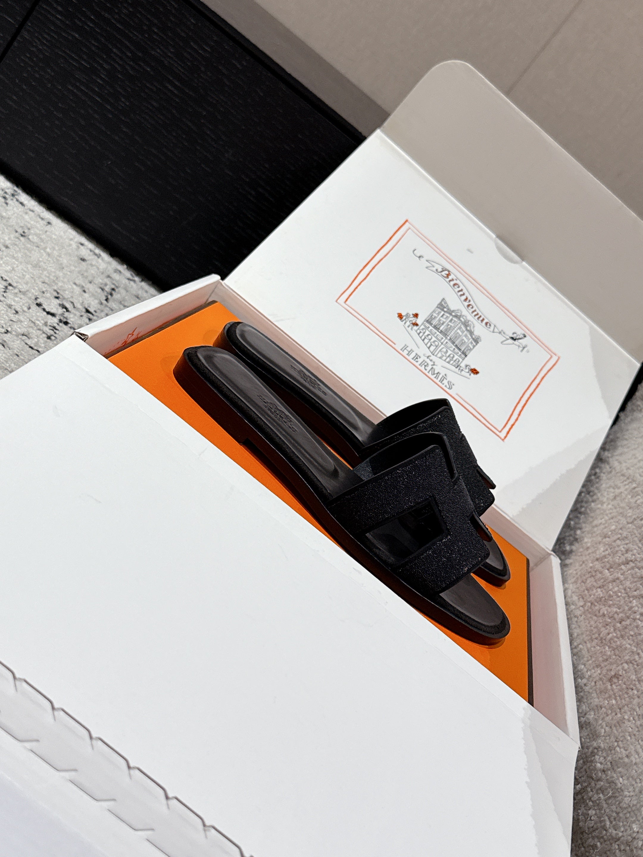HM 25 Oran Glitter Sandal All Black Calfskin
