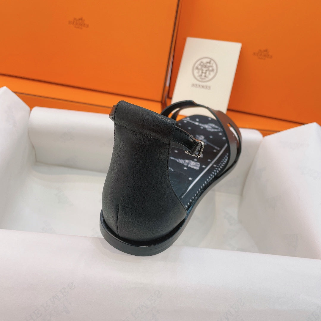 HM Flat Sandals Black Cowhide 348048