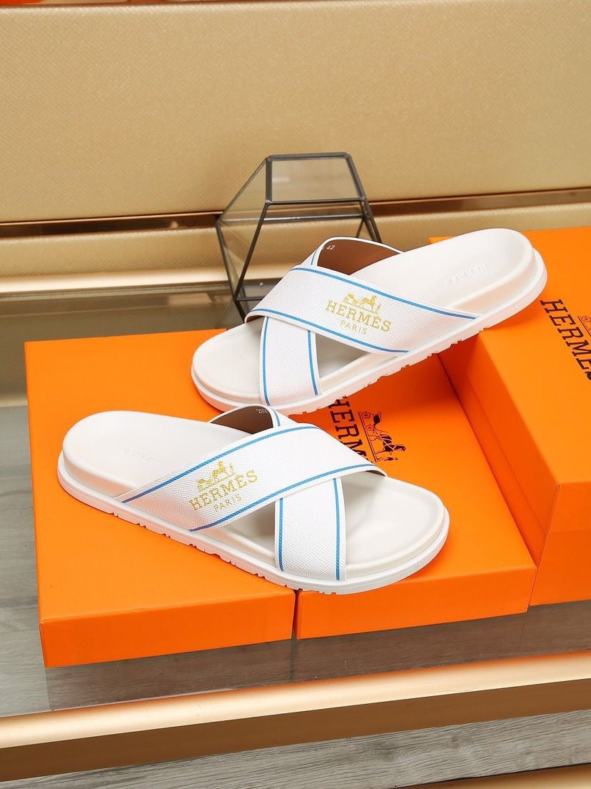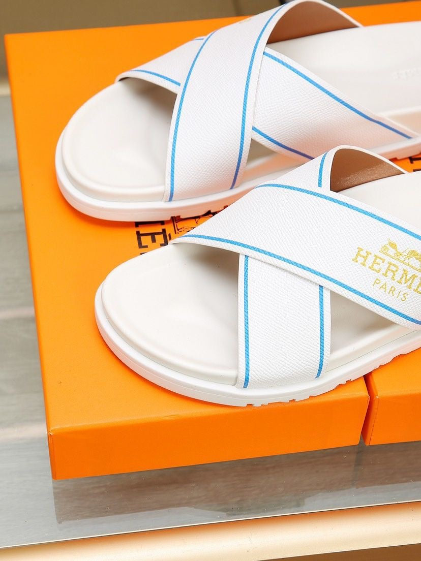 HM Men's Cross Strap Slide White Cowhide 544099