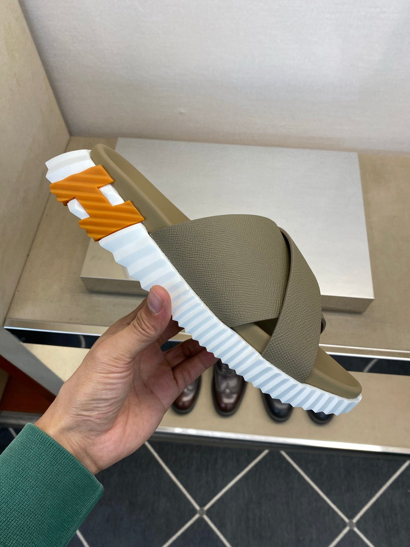 HM Men's Infra Slide Moss Green Calfskin 602608