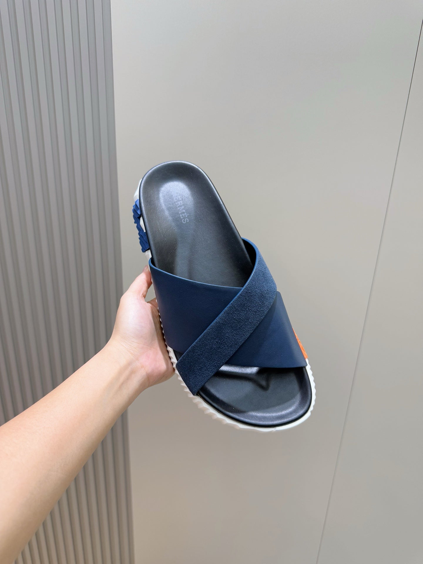 HM Men's Infra Slide Navy Blue Cowhide Suede 599997