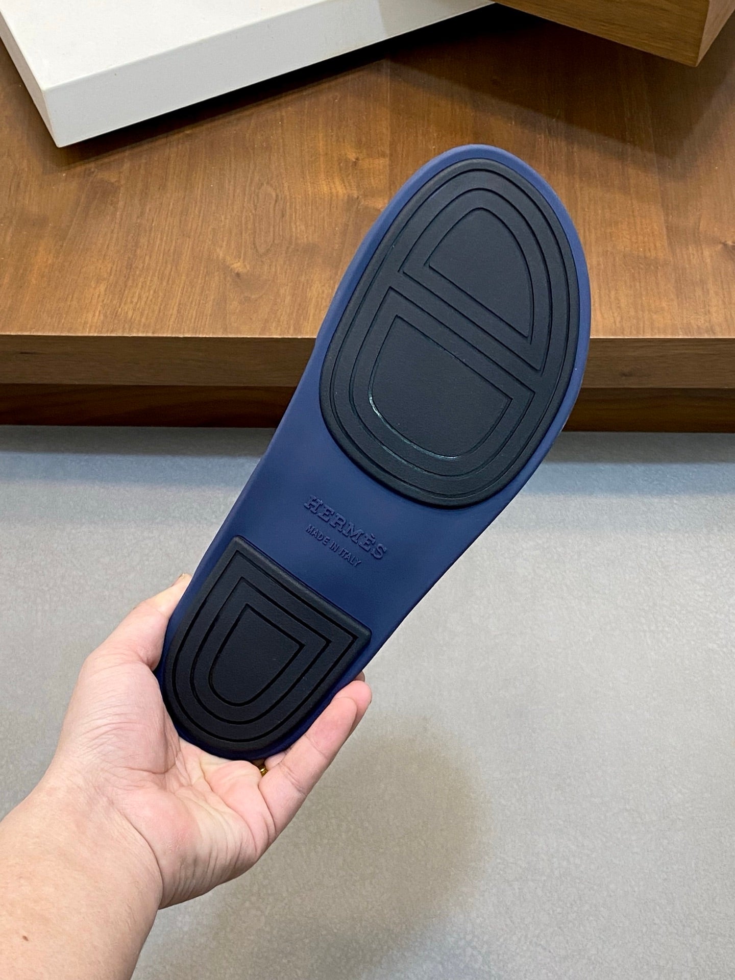 HM Men's Slide Navy Blue Cowhide Leather 588997