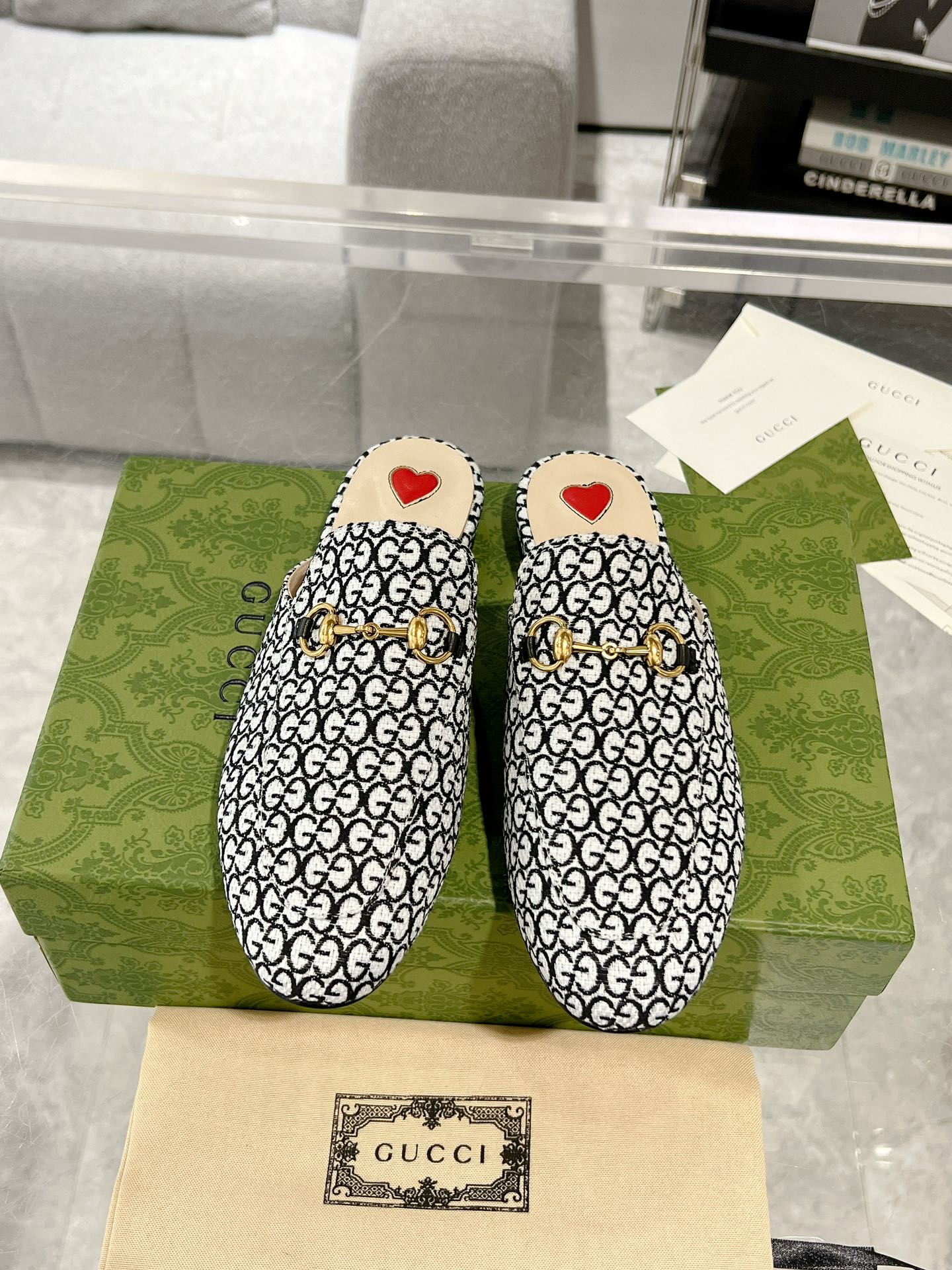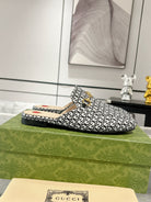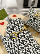 MEN'S MULE WITH HORSEBIT IN BLACK MIX WHITE MONOGRAM JACQUARD FABRIC