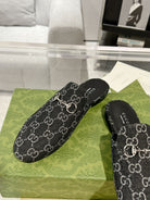 MEN'S MULE WITH HORSEBIT IN BLACK MONOGRAM JACQUARD FABRIC
