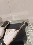 mule sandal 30 white black quilted lambskin