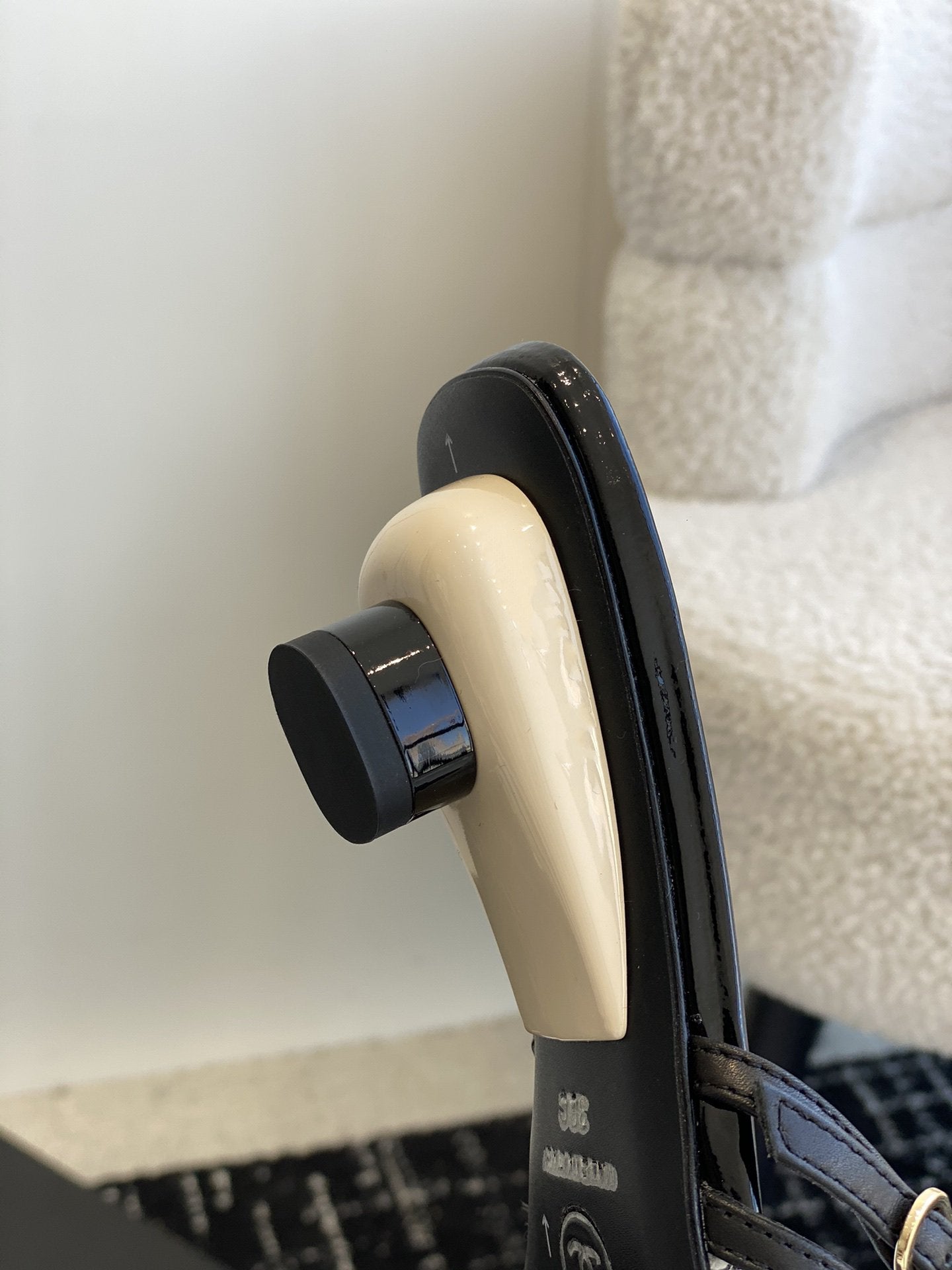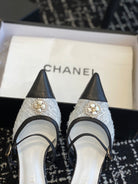 mule sandal white tweed black lambskin