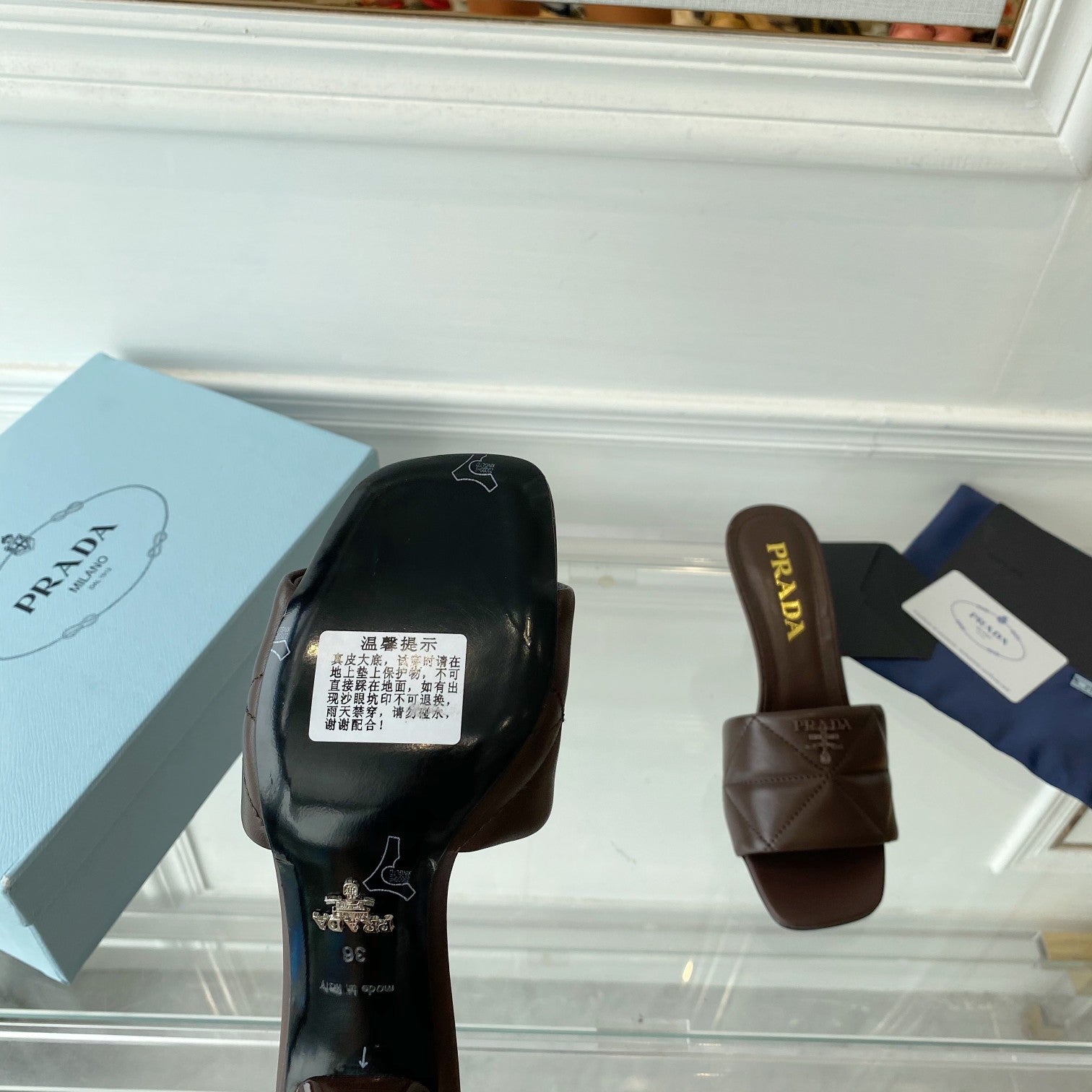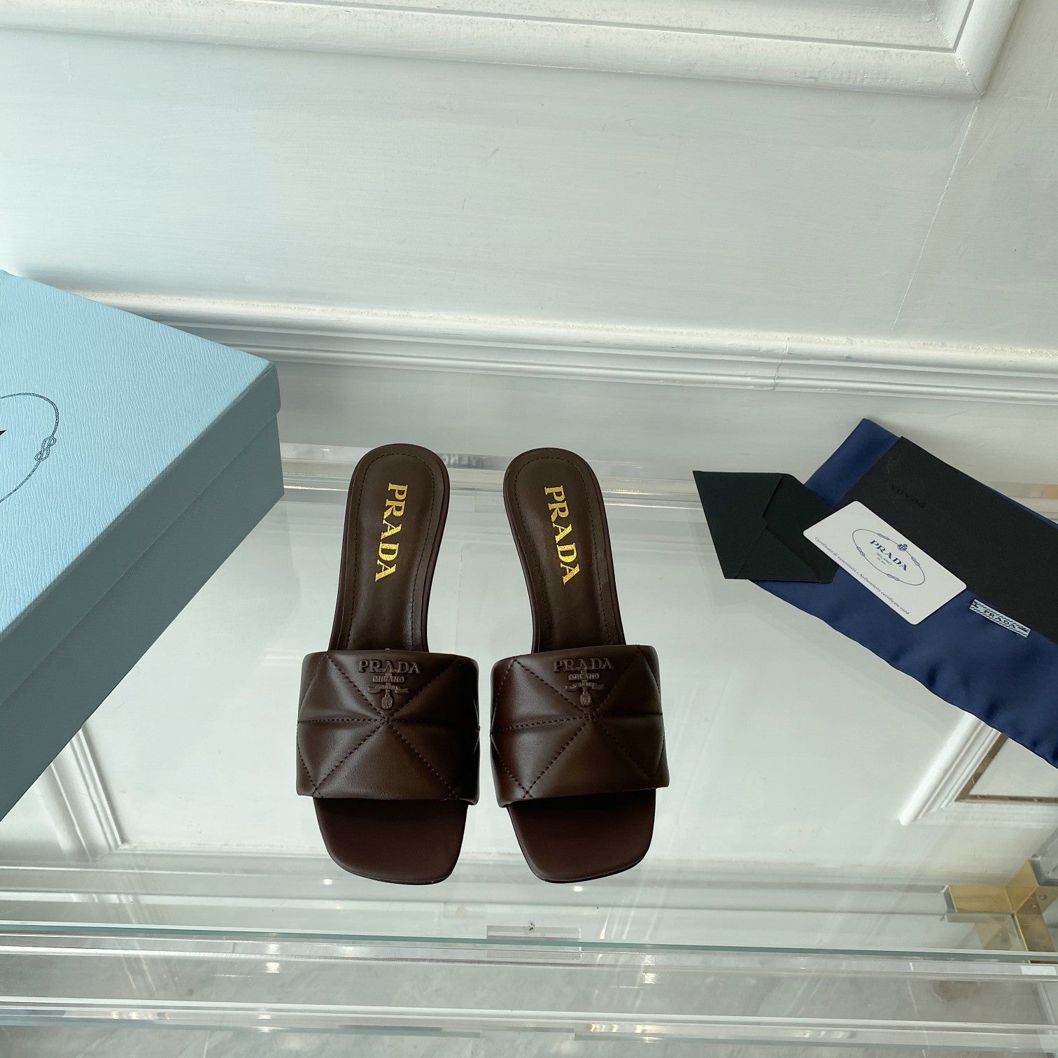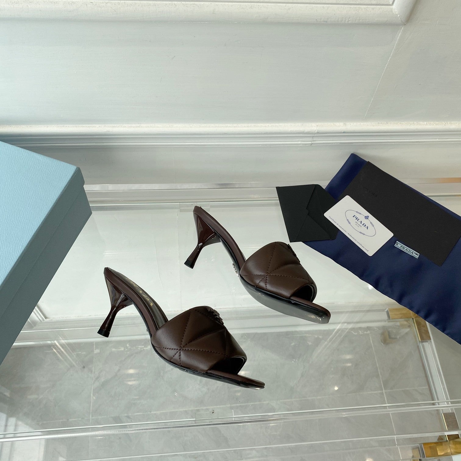 Pra Heeled Sandal 65 Pointed Sole Quilted Chocolate Leather