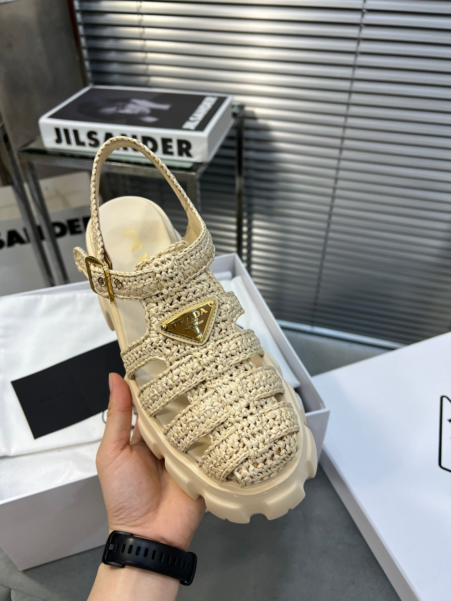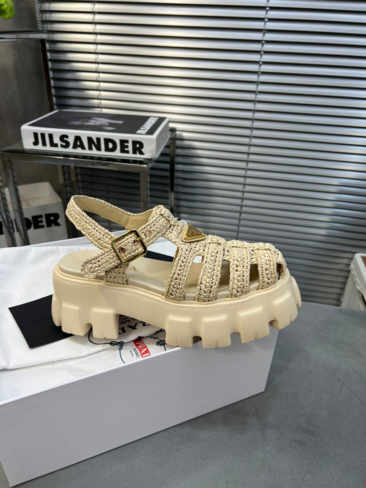 - Material: Raffia-effect yarn, Rubber Sole