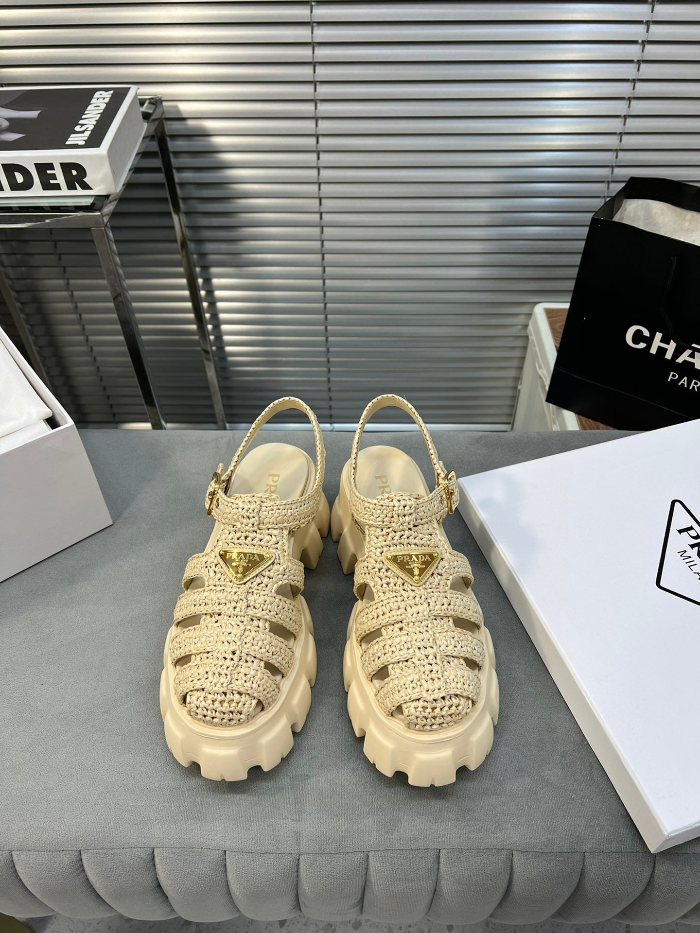 Pra Monolith Crochet Cage Sandals 55 Beige