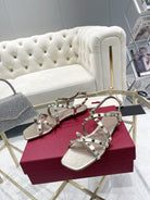 Rockstud 1cm Square Toe Rose Cannelle and Gold Leather Sandals