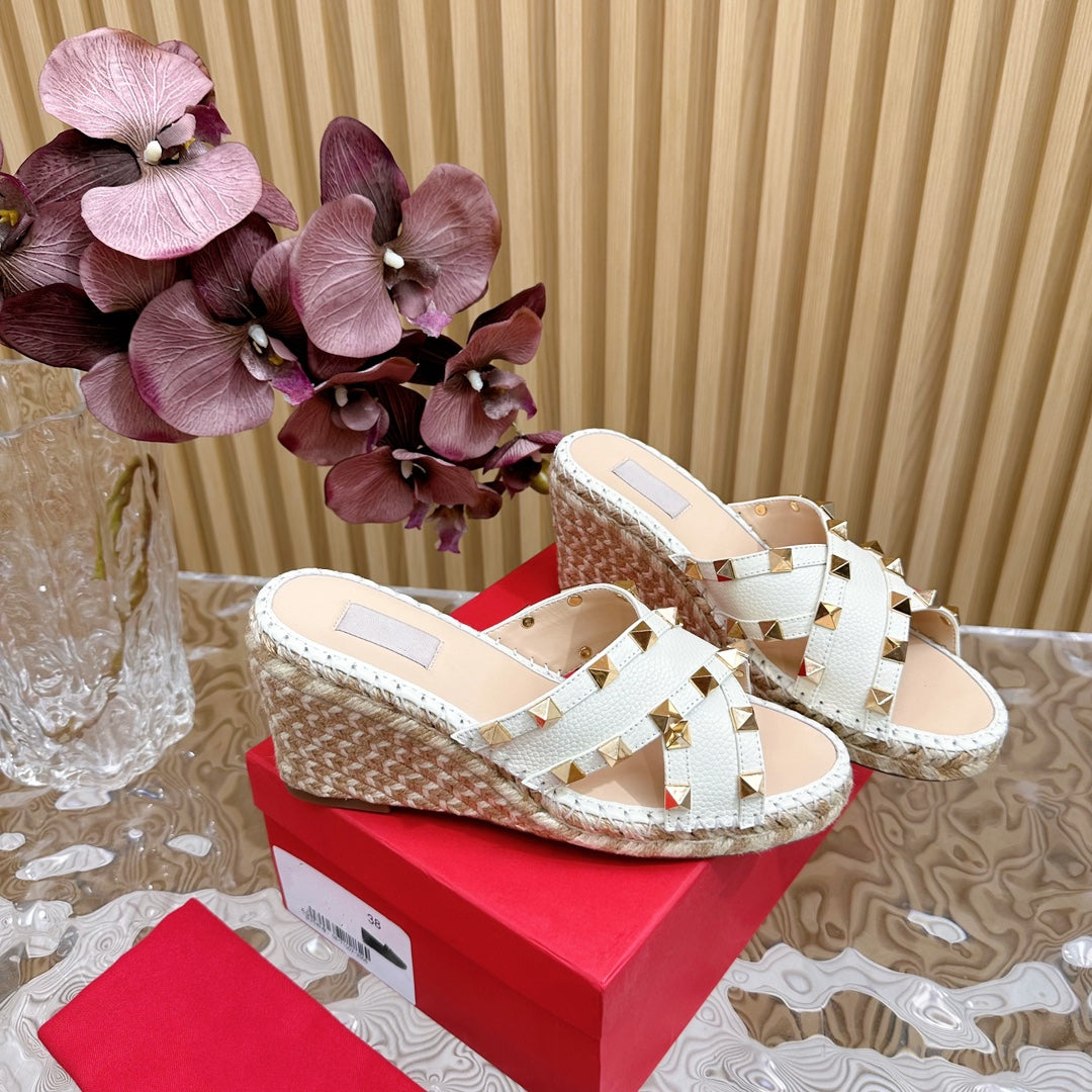 Rockstud Crisscross Espadrilles 80mm Sandal Wedges White