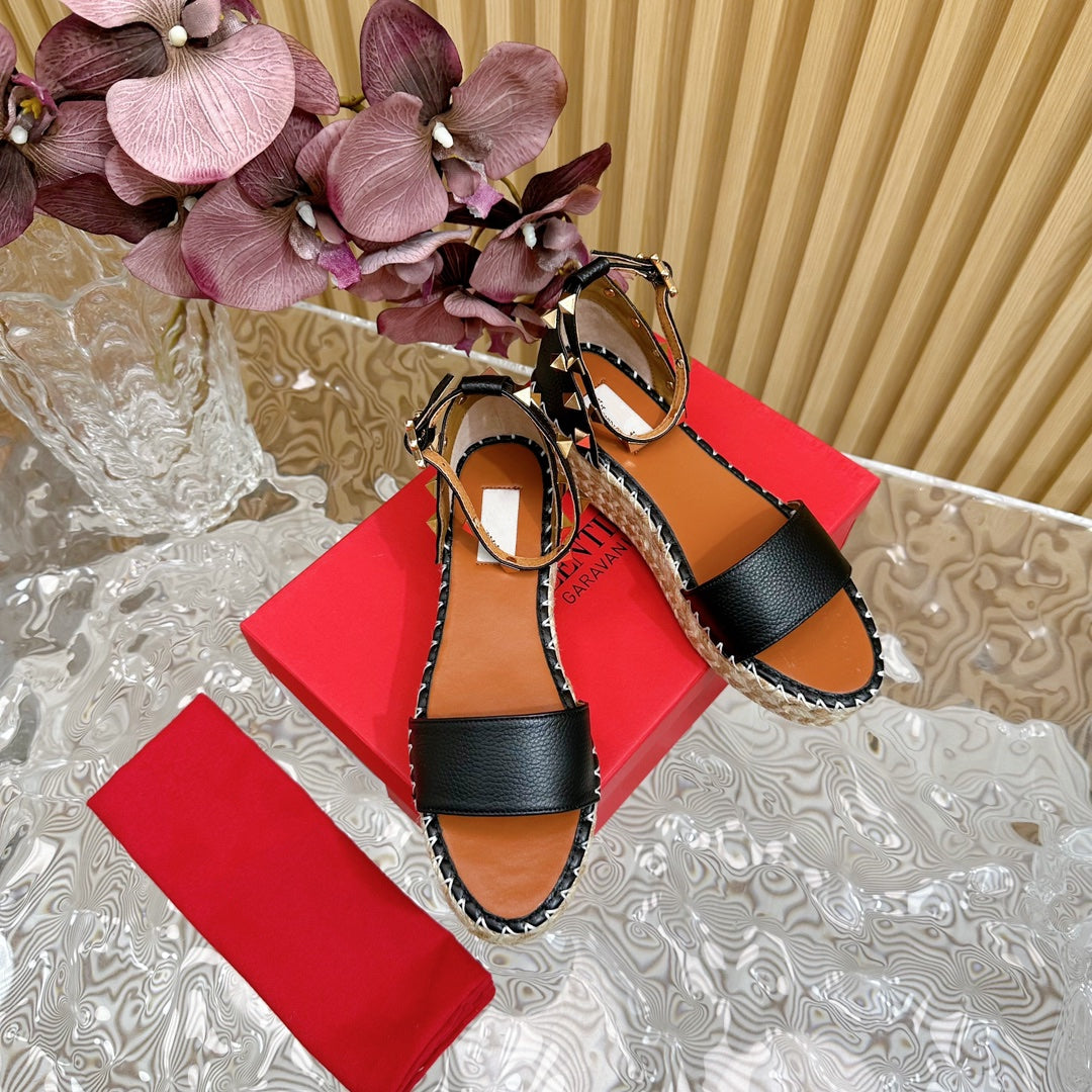 Rockstud Espadrille 45mm Black leather sandals