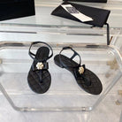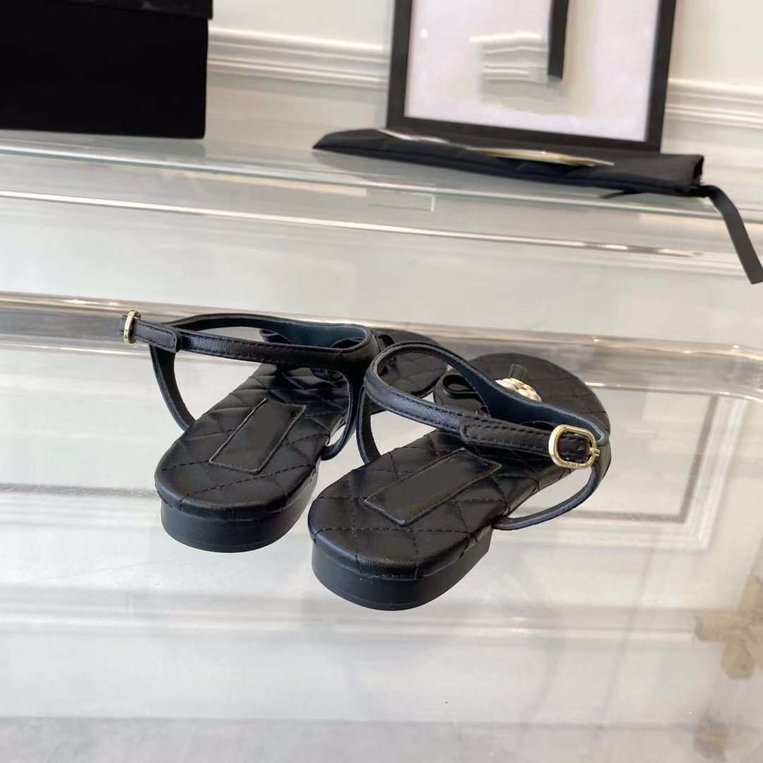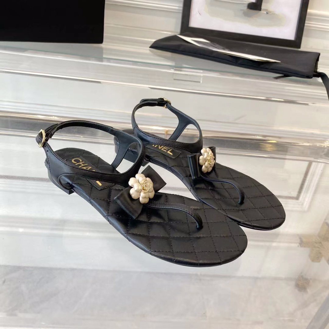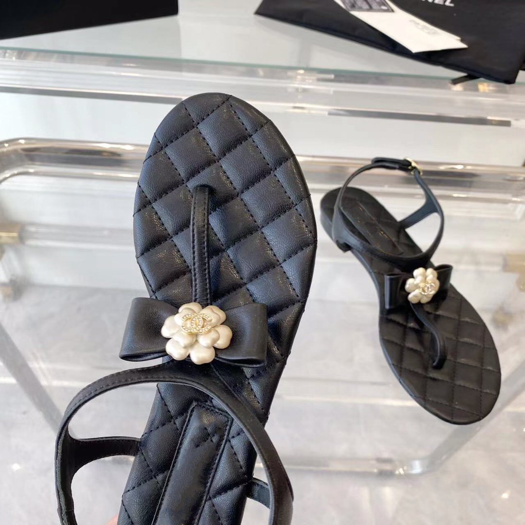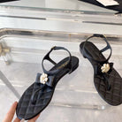 sandal black quilted lambskin flower cc