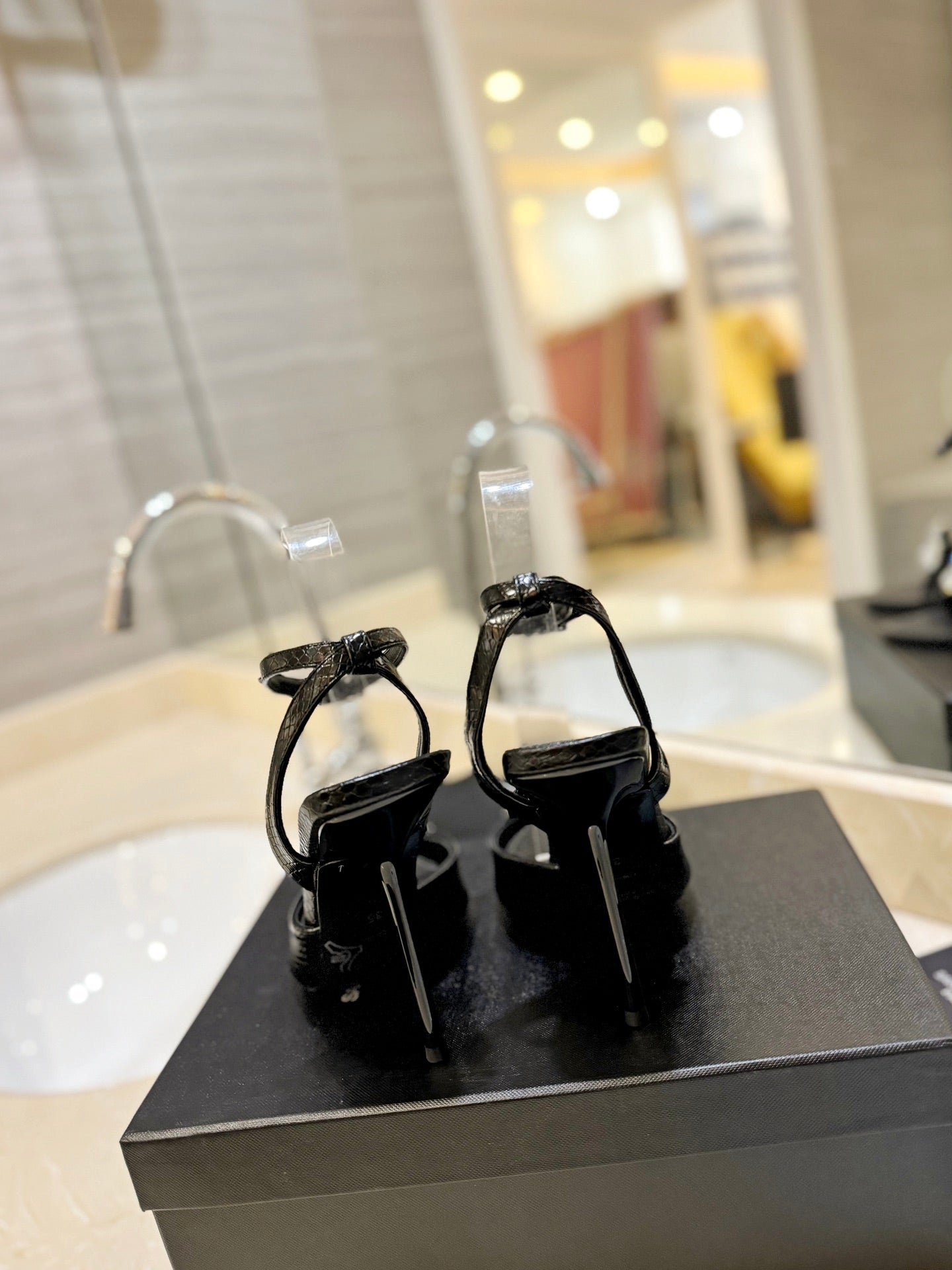 SL AYERS SNAKE CRYSTAL SANDAL BLACK CALFSKIN