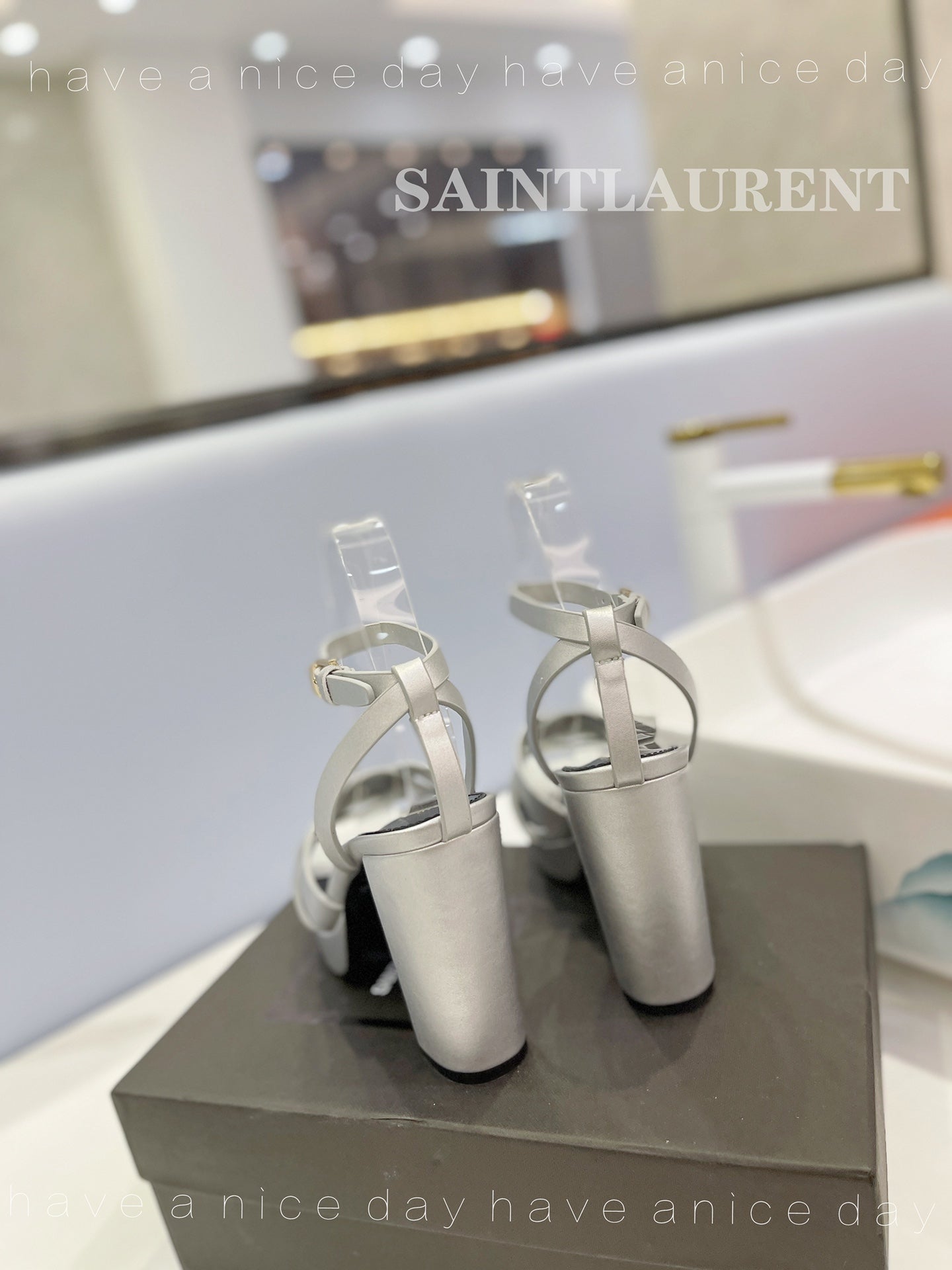 SL TRIBUTE FLATFORM SANDALS SILVER CALFSKIN