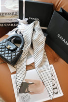 CC Scarf 110 CM In White Black Polka Dot Silk 348706